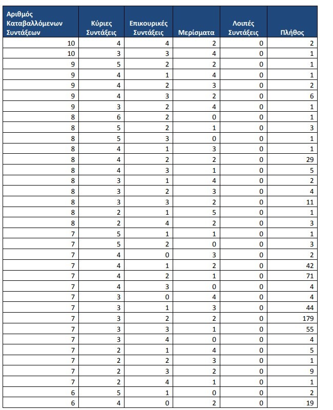 Έντεκα συνταξιούχοι λαμβάνουν 9 συντάξεις και 62 λαμβάνουν οκτώ συντάξεις.