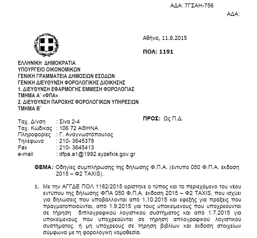 Επίσης στην εγκύκλιο η γενική γραμματέας Δημοσίων Εσόδων, πέρα από την προσθήκη του νέου κωδικού για την άμεση παρακράτηση του ΦΠΑ από τις τράπεζες, δίνει οδηγίες και για τον τρόπο συμπλήρωσης του νέου εντύπου. Για παράδειγμα, με τη συμπλήρωση του κωδικού 503, ο φορολογούμενος μπορεί να διεκδικήσει άμεση κατάθεση του πιστωτικού ΦΠΑ στον τραπεζικό του λογαριασμό. Συγκεκριμένα, η εγκύκλιος αναφέρει: