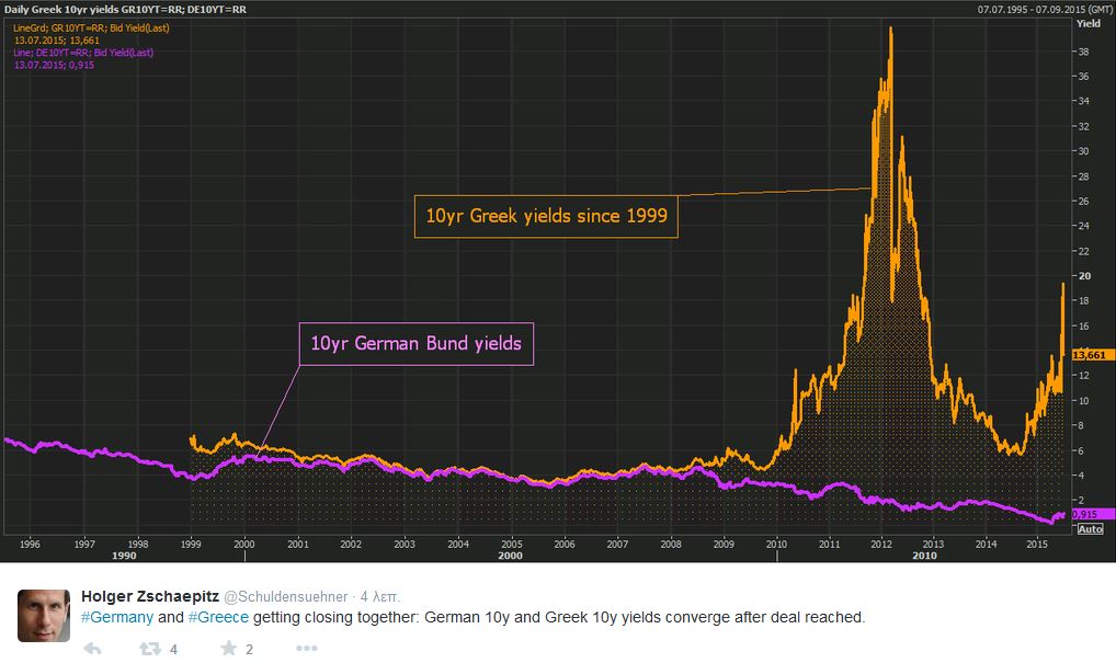 Έπεσαν πάνω από 25% μετά την ανακοίνωση επίτευξης συμφωνίας, ενώ υπόχωρησαν και οι αποδόσεις του 10ετούς ομολόγου.