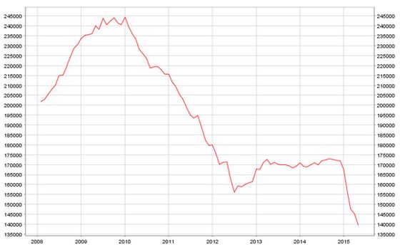 Συνολικά η υποχώρηση αγγίζει τα 109 δισ. ευρώ από τα ιστορικά υψηλά του Δεκεμβρίου 2009, όταν ήταν στα 238 εκατ. ευρώ.