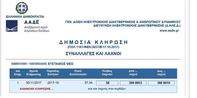 Η ακριβής ημερομηνία και ώρα διεξαγωγής της κλήρωσης για κάθε μήνα, καθώς και τυχόν αλλαγές (ανάκληση, ακύρωση, μετάθεση), θα γνωστοποιούνται με κάθε πρόσφορο μέσο και ιδίως μέσω ανάρτησης στο δικτυακό τόπο της Α.Α.Δ.Ε. (www.aade.gr). Σε κάθε κλήρωση, αναδεικνύονται χίλιοι (1.000) τυχεροί λαχνοί και χίλιοι (1.000) αναπληρωματικοί, οι οποίοι μετά το πέρας της διαδικασίας αναρτώνται στο δικτυακό τόπο της Α.Α.Δ.Ε. (www.aade.gr). Οι αναπληρωματικοί λαχνοί ενεργοποιούνται στις εξής περιπτώσεις: