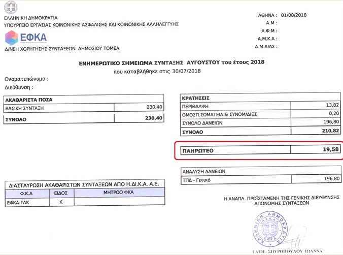 Αυτό είναι το ενημερωτικό σημείωμα σύνταξης Αυγούστου 2018 του Ε.Φ.Κ.Α.