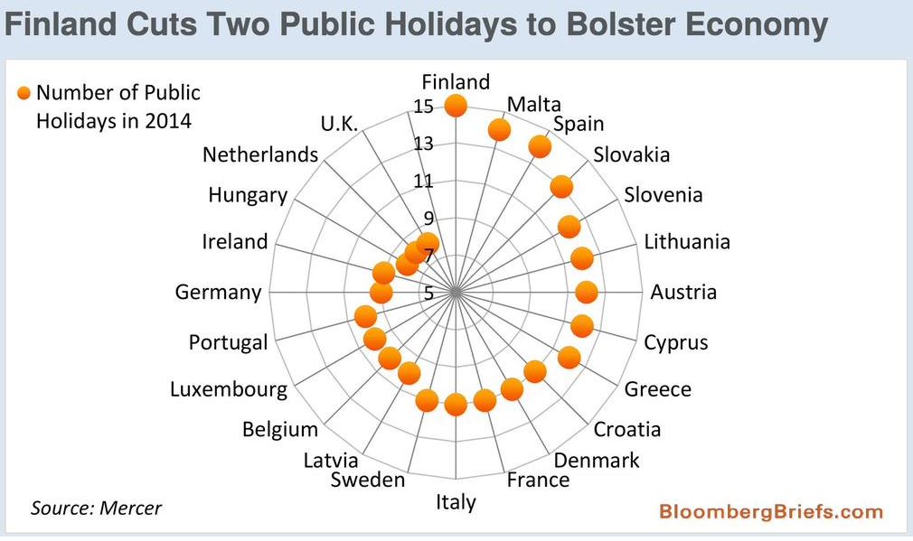 Η κυβέρνηση της Φινλανδίας, της σκληρής στάσης έναντι της Ελλάδας, κόβει εθνικές αργίες και ετήσιες άδειες για να ενισχύσει το ΑΕΠ που πέφτει σε ύφεση.