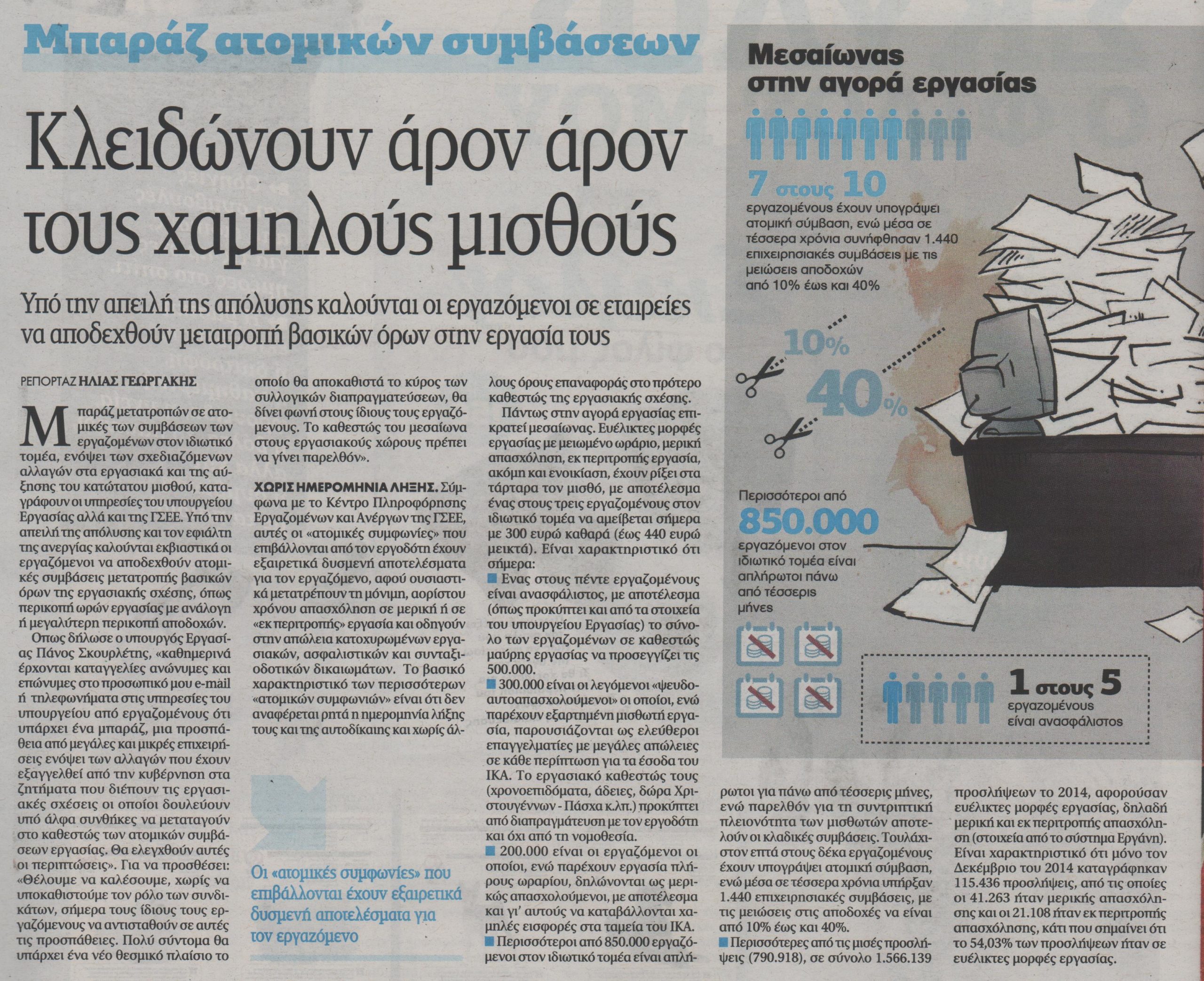 Υπό την απειλή της απόλυσης και τον εφιάλτη της ανεργίας καλούνται εκβιαστικά οι εργαζόμενοι να αποδεχθούν ατομικές συμβάσεις μετατροπής βασικών όρων της εργασιακής σχέσης, όπως περικοπή των όρων εργασίας με ανάλογη η μεγαλύτερη περικοπή αποδοχών.