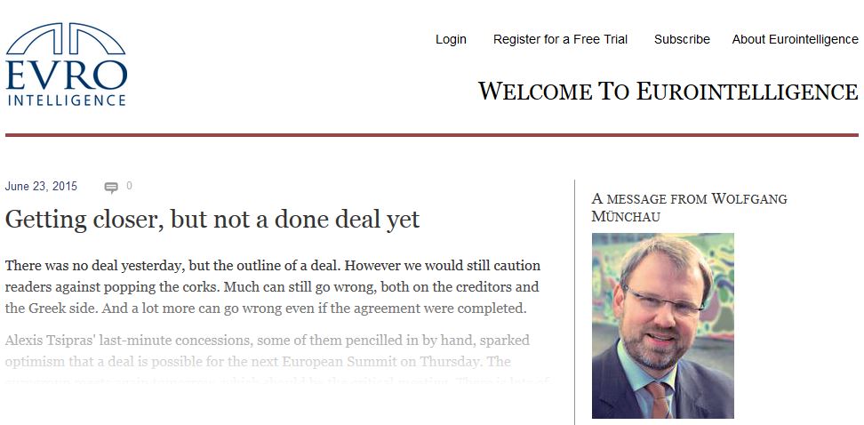 «Δεν υπήρξε καμία συμφωνία χθες, αλλά ένα περίγραμμα με στόχο τη συμφωνία», γράφει ο Β. Μινχάου των FT, στο Eurointelligence και προτείνει να μην αρχίσουν ακόμα τα πανηγύρια.
