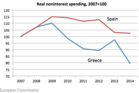 Το πρόβλημα κατά τον ίδιο είναι ότι οι μεγάλες περικοπές δαπανών σε μια οικονομία χωρίς ανεξάρτητη νομισματική πολιτική και την δυνατότητα να υποτιμήσει το νόμισμα της οδηγούν σε τεράστια οικονομική συρρίκνωση. Το οποίο σημαίνει πως ότι κερδίζεται από το μέτωπο των δαπανών χάνεται από το μέτωπο των εσόδων.