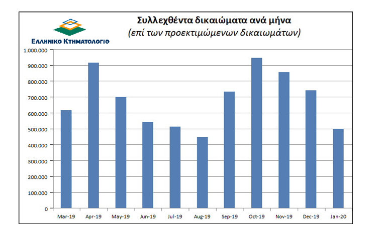 Είναι ενδεικτικό πως από τον Ιούλιο 2019 μέχρι και τον Ιανουάριο 2020 συγκεντρώθηκαν πάνω από 6.553.651 δικαιώματα (συμπεριλαμβανομένων των δηλώσεων εμπρόθεσμης προσέλευσης) καθιστώντας εφικτή και την ολοκλήρωση της πρώτης φάσης κτηματογράφησης.
