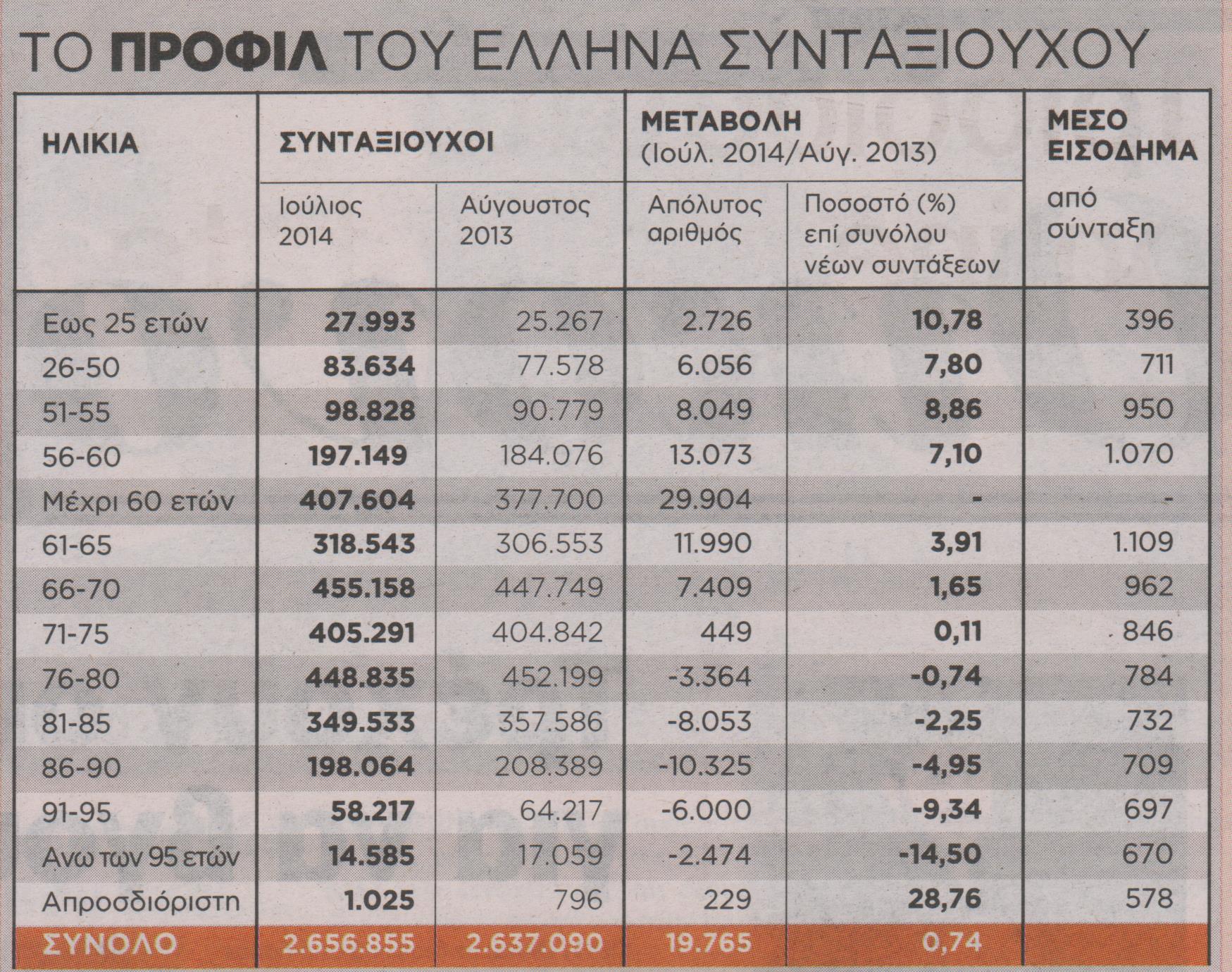 Μέσα σε ένα χρόνο, οι 50άρηδες συνταξιούχοι αυξήθηκαν κατά 8,8% ποσοστό που είναι το υψηλότερο σε σύγκριση με όσους συνταξιοδοτήθηκαν από τα Ταμεία σε άλλες ηλικίες. Εξαίρεση αποτελούν οι συνταξιούχοι ως 25 ετών που αυξήθηκαν σε ποσοστό 10,78% αλλά πρόκειται για περιπτώσεις χορήγησης σύνταξης από έμμεσο δικαίωμα (λόγω θανάτου, ορφάνιας κλπ) και όχι από επιλογή των ασφαλισμένων.