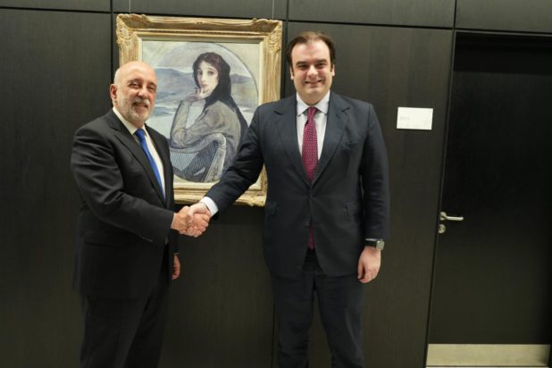 «Κρίσιμα ζητήματα στα οποία η Ευρωπαϊκή Κεντρική Τράπεζα και οι ευρωπαϊκές κυβερνήσεις συνεργάζονται στενά» συζήτησε σήμερα ο υπουργός Εθνικής Οικονομίας και Οικονομικών, Κυριάκος Πιερρακάκης με τον διοικητή της Κεντρικής Τράπεζας της Ιρλανδίας, Gabriel Makhlouf, στο πλαίσιο της επίσημης επίσκεψής του στο Δουβλίνο.