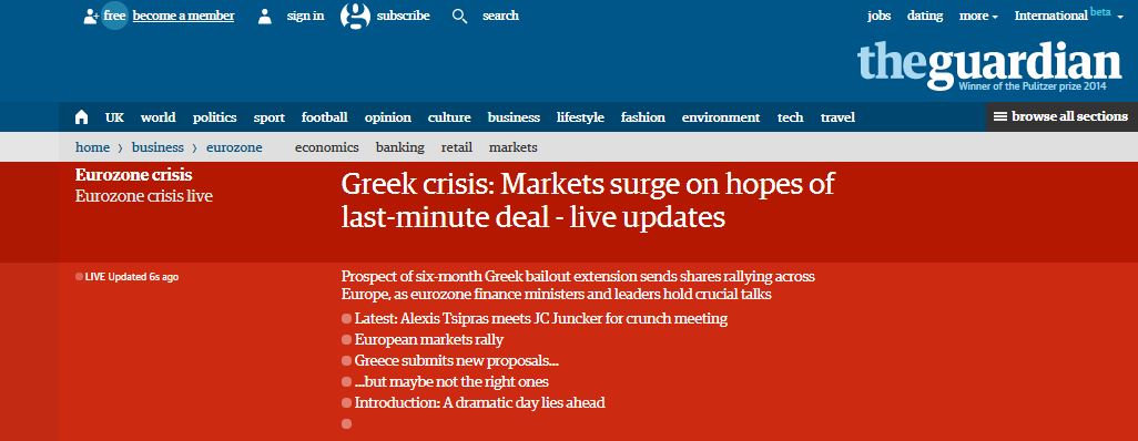 19:00: Ατυπη συνάντηση ηγετών των χωρών της Ευρωζώνης [Eurozone Summit] με θέμα την Ελλάδα.