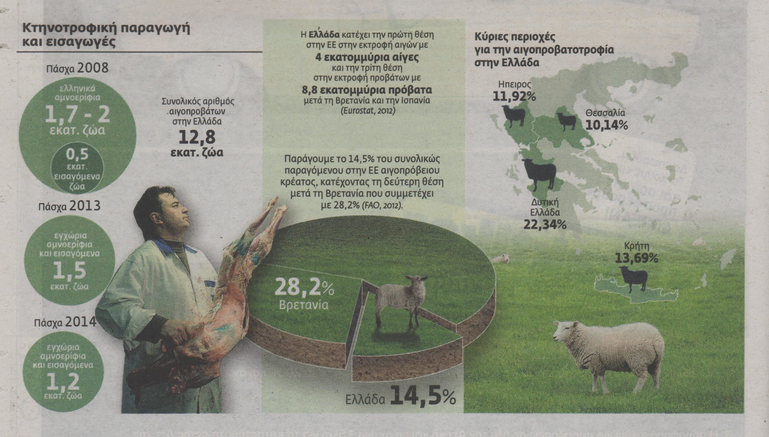 Παράλληλα οι εισαγωγές από τα Βαλκάνια, οι οποίες κάθε χρόνο ενισχύουν την πασχαλινή αγορά, θα είναι περιορισμένες. Αιτία, η μικρή παραγωγή των βούλγαρων και ρουμάνων κτηνοτρόφων, την οποία θα προτιμούσαν να διοχετεύσουν σε άλλες ακριβότερες ευρωπαϊκές αγορές, αφού εφέτος το Πάσχα των ορθόδοξων συμπίπτει με αυτό των καθολικών.