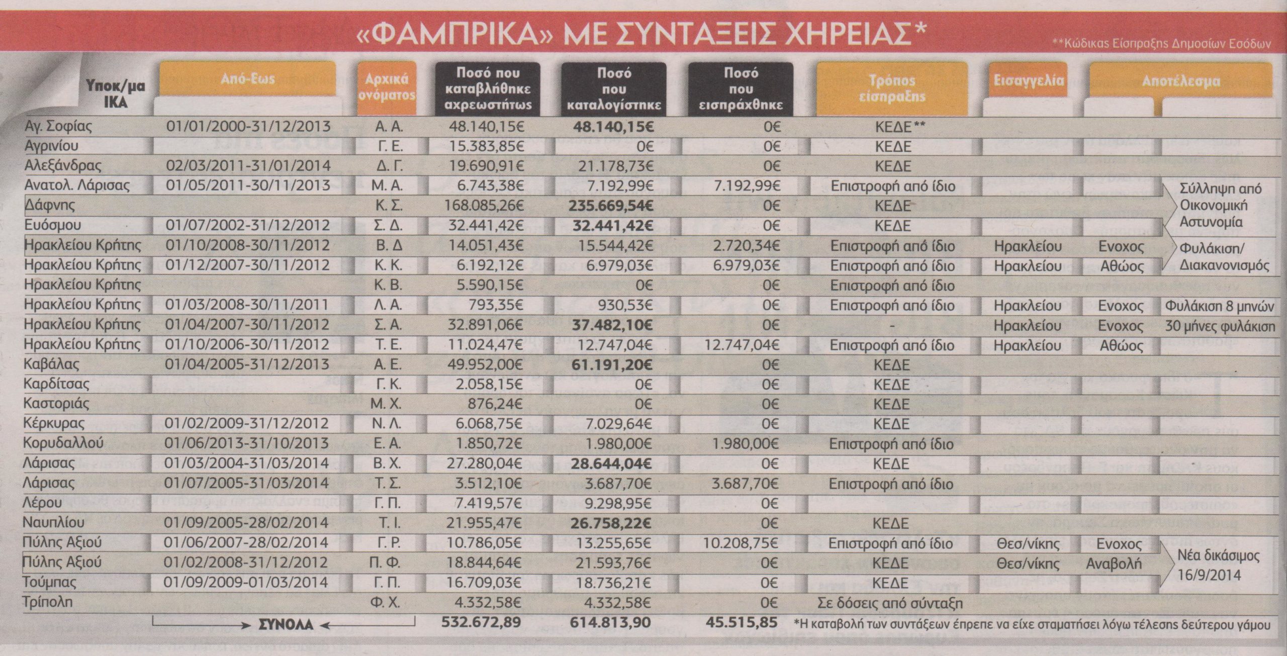 Λίστα… απάτης με 860 παράνομες συντάξεις