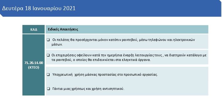 Συγκεκριμένα από τη Δευτέρα 18 Ιανουαρίου: