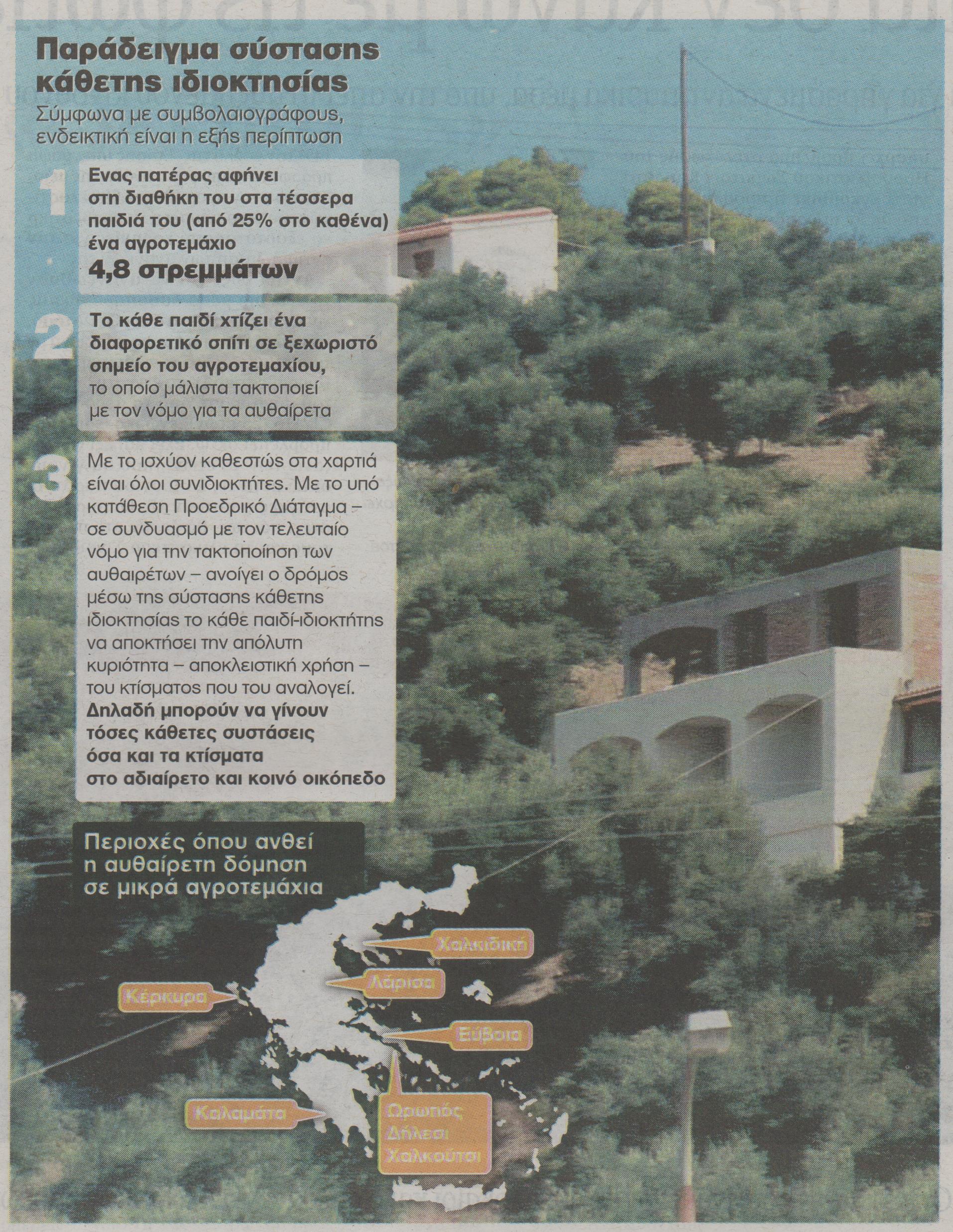 Θα αποκτήσουν πλήρη κυριότητα σε όποιο κτίσμα τους αναλογεί είτε είναι νόμιμο είτε είναι αυθαίρετο.
