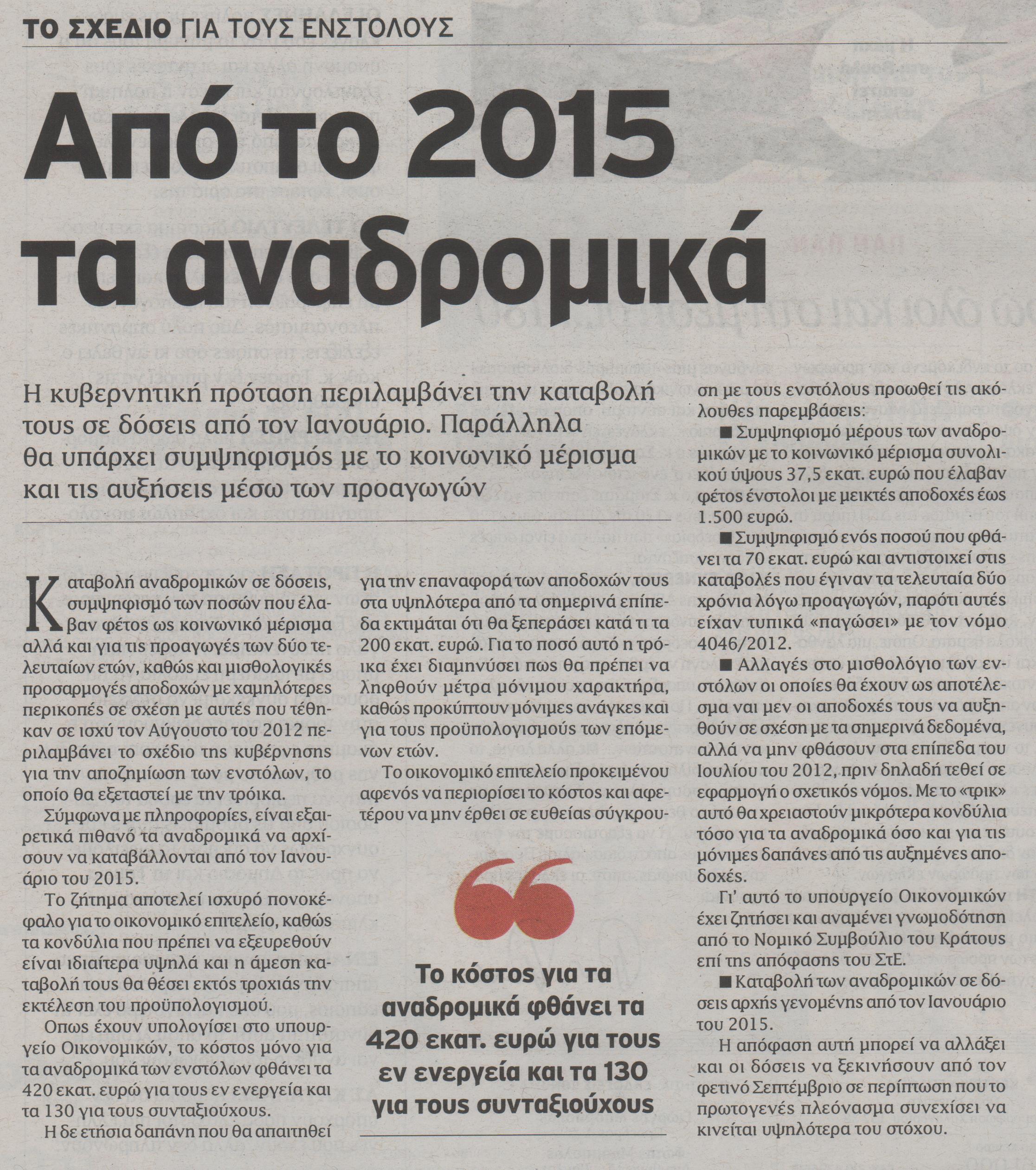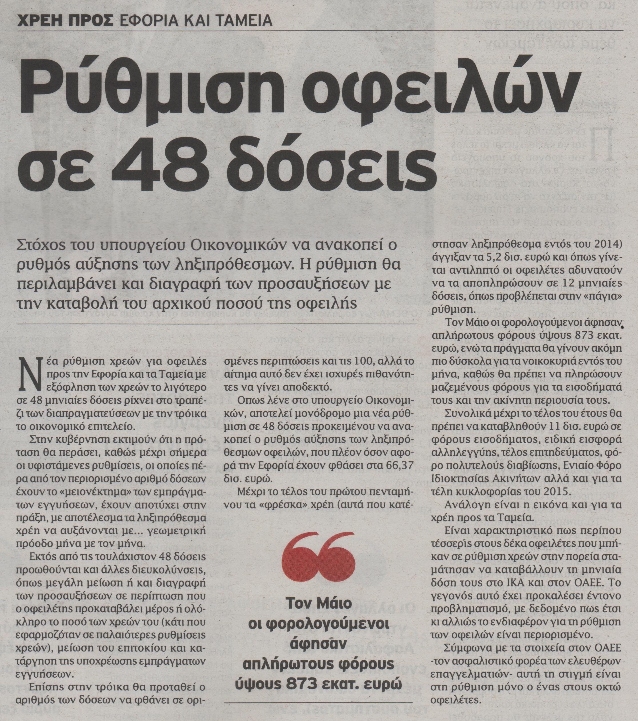 Λύση πακέτο για χρέη στο Δημόσιο και ένστολους