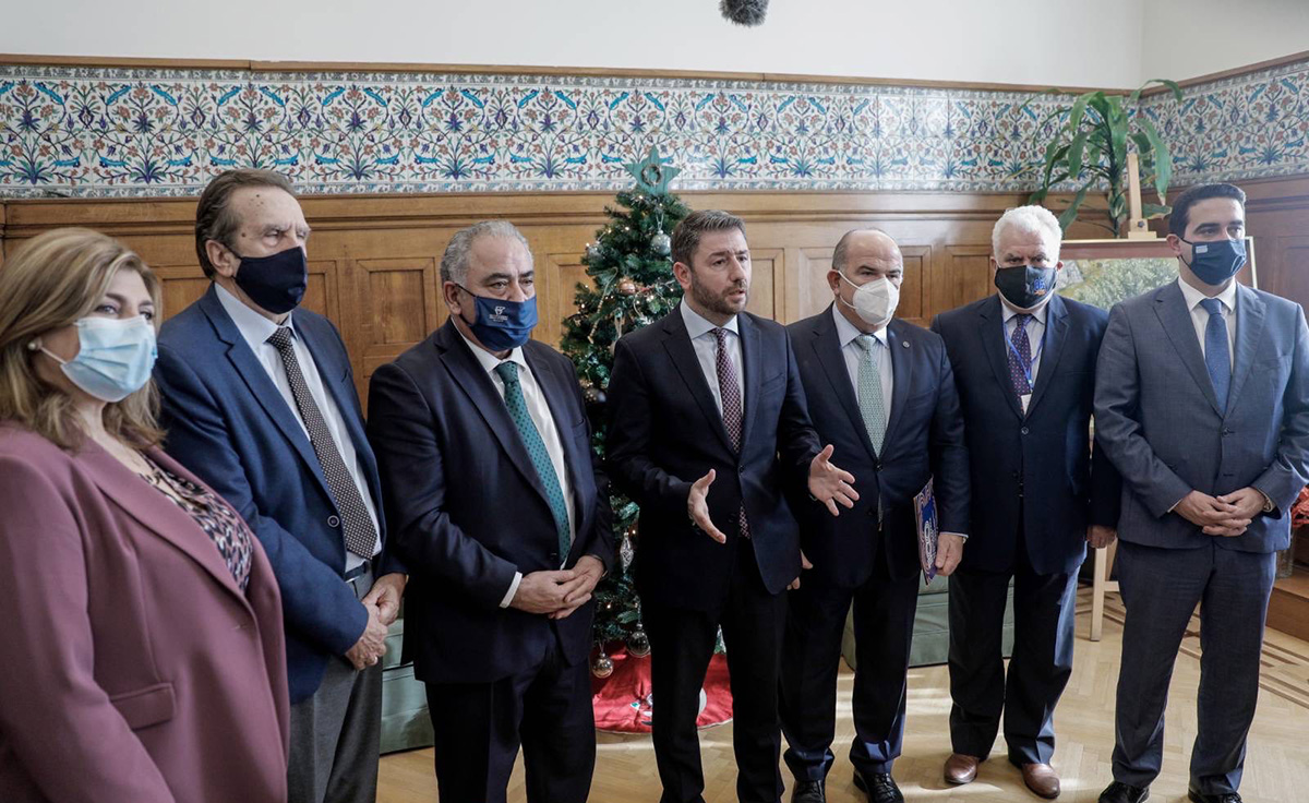 O Πρόεδρος της Κεντρικής Ένωσης Επιμελητηρίων Ελλάδος και Πρόεδρος του Επαγγελματικού Επιμελητηρίου Αθηνών, Γιάννης Χατζηθεοδοσίου, συναντήθηκε με τον Πρόεδρο του ΠΑΣΟΚ και του Κινήματος Αλλαγής, Νίκο Ανδρουλάκη, τη Δευτέρα 20 Δεκεμβρίου 2021.