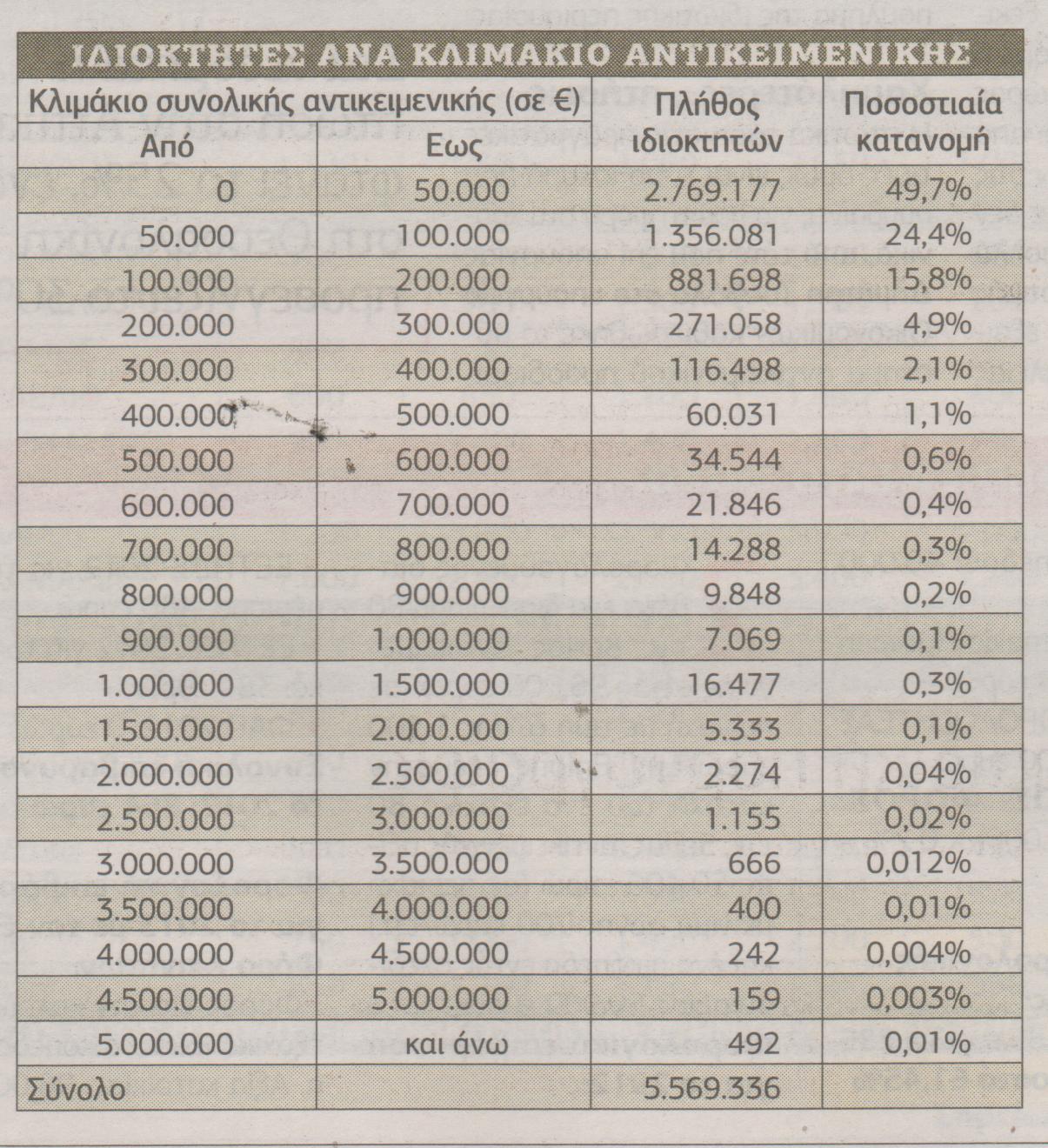 Mειώνουν τα χαράτσια-Αναλυτικοί πίνακες