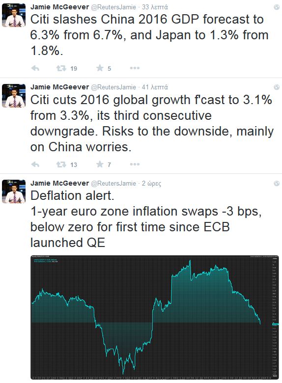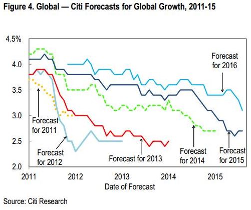 Η Citigroup χαμηλώνει για τρίτη φορά τις προβλέψεις για την παγκόσμια οικονομία το 2015-2016.
