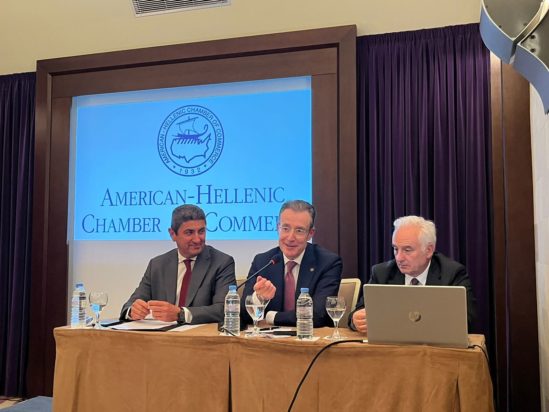 Ο κ. Αυγενάκης στο χαιρετισμό που απηύθυνε ανέδειξε ότι «Αυτό το μοντέλο θέλουμε να ενισχύσουμε για την αναπτυξιακή δυναμική της Κρήτης μας, σε τομείς όπως ο τουρισμός, ο πρωτογενής τομέας, η οικονομία της γνώσης, η έρευνα και καινοτομία, η ενέργεια, η νέα επιχειρηματικότητα αλλά και το τεράστιο έργο που κάνουν τα πανεπιστήμια και ερευνητικά κέντρα του νησιού μας.» Παράλληλα, επισήμανε τον ρόλο του Νησιού στο πλαίσιο της στρατηγικής περιφερειακής συμφωνίας 3+1, την παρουσία πολλών μελών του Ελληνο-Αμερικανικού Εμπορικού Επιμελητηρίου στην Κρήτη, τα σημαντικά έργα υποδομών, αλλά και τις σύνθετες προκλήσεις που γεννούνται κάθε μέρα – ακόμα και τα αποτελέσματα των εκλογών στην Αμερική – τα οποία μετασχηματίζουν διαρκώς το οικονομικό μοντέλο της Κρήτης.