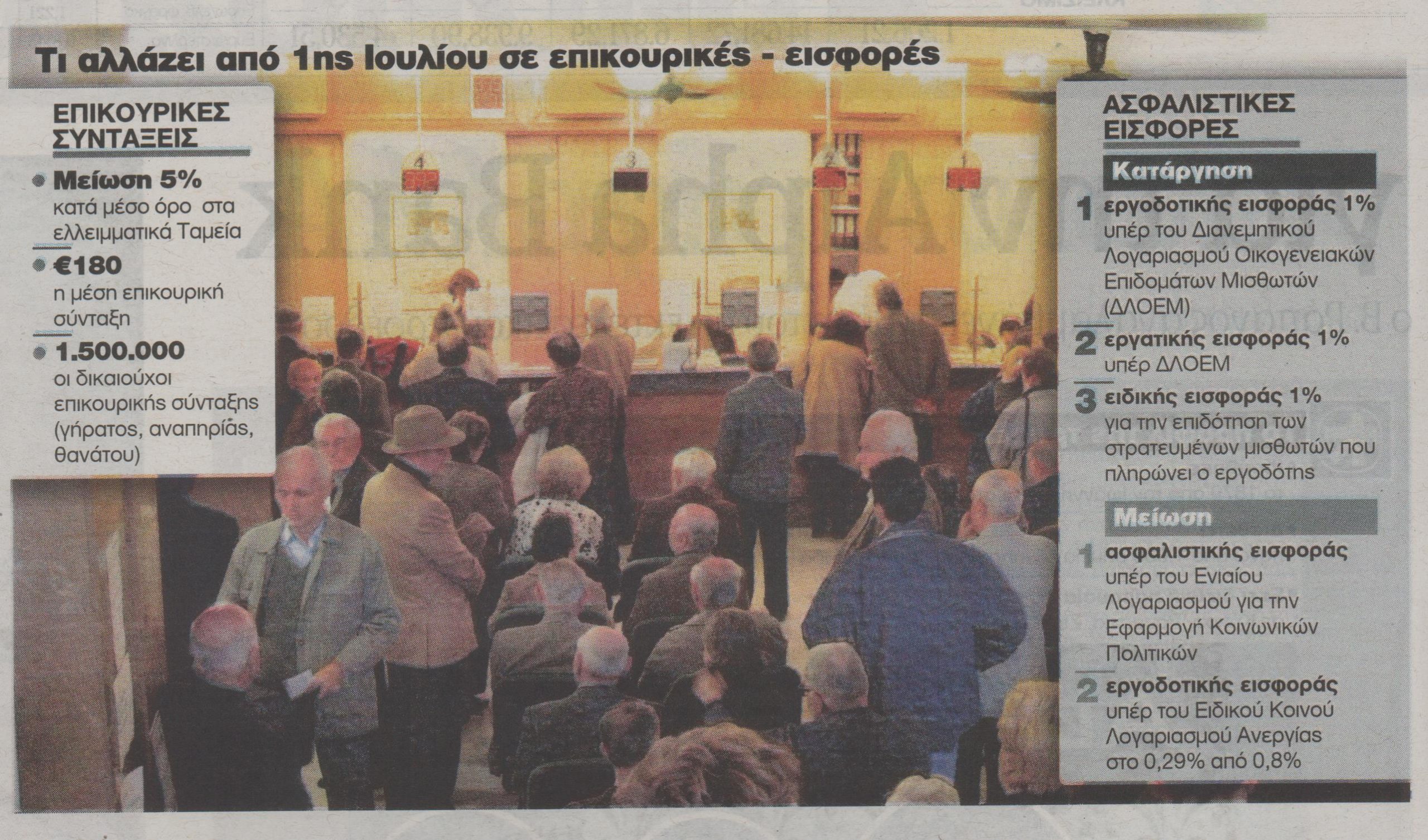 Περιορισμένης κλίμακας θα είναι οι μειώσεις που θα γίνουν από την 1η Ιουλίου 2014 στις επικουρικές συντάξεις. Η μείωση θα είναι μεσοσταθμική κατά 4%-5% και δεν θα αφορά όλα τα ασφαλιστικά ταμεία.