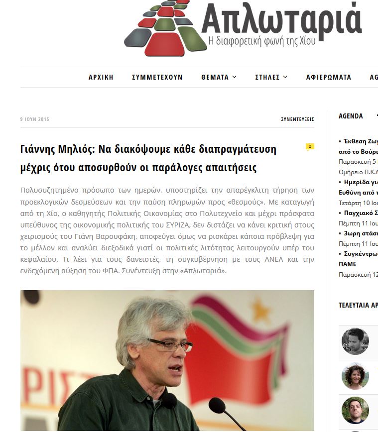 Διαβάστε όλη τη συνέντευξη του Γ. Μηλιού στην “Απλωταριά”