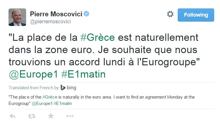 Την ελπίδα ότι στο Eurogroup της Δευτέρας θα υπάρξει συμφωνία με την Ελλάδα εξέφρασε ο επίτροπος Νομισματικών Υποθέσεων Πιερ Μοσκοβισί.