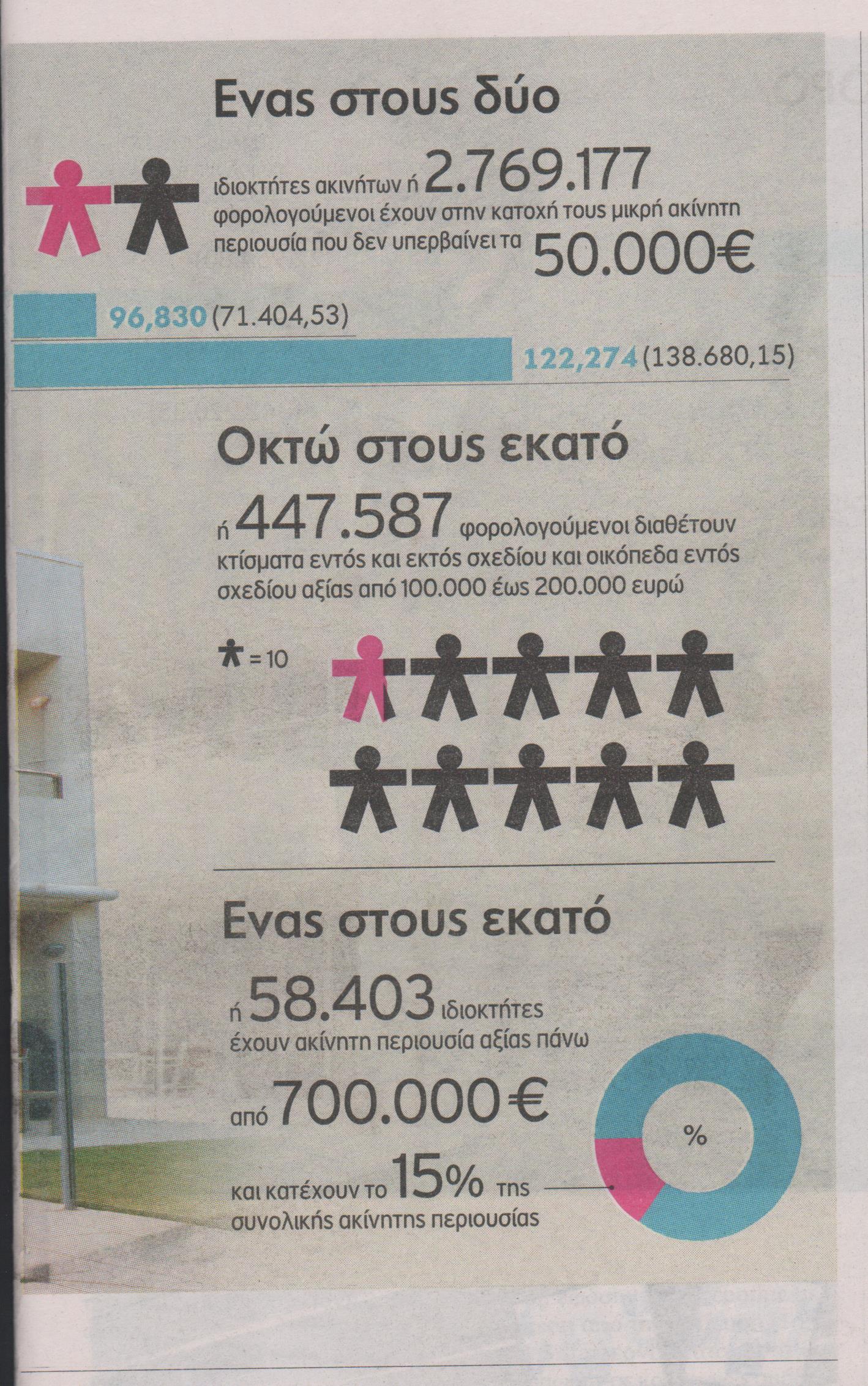 Στόχος των προωθούμενων αλλαγών είναι να απαλλαγούν πλήρως από τη νέα φορολογία οι μικρές ιδιοκτησίες και να ελαφρυνθούν σε σχέση με το σημερινό καθεστώς οι μεσαίες. Υπολογίζεται ότι δεν θα πληρώσουν φόρο περίπου 2.800.000 ιδιοκτήτες σε σύνολο 5.570.000