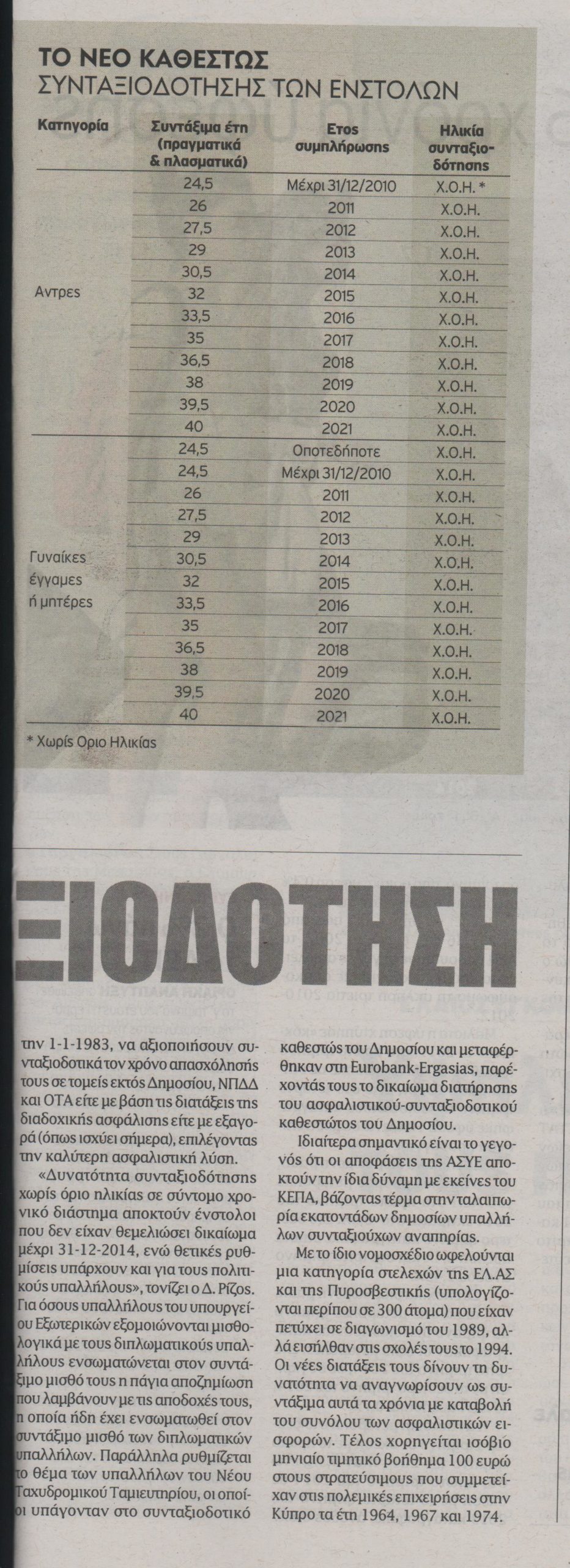 Όπως εξηγεί ο δικηγόρος Διονύσης Ρίζος, ειδικός σε θέματα Εργατικού και Ασφαλιστικού Δικαίου, αλλάζει εντελώς ο χάρτης των ορίων ηλικίας των ενστόλων που από 1-1-2015 θα έπρεπε να είχαν συμπληρώσει 40 έτη ασφάλισης (πραγματικά και πλασματικά) ή το 60ό έτος της ηλικίας τους, για να συνταξιοδοτηθούν.