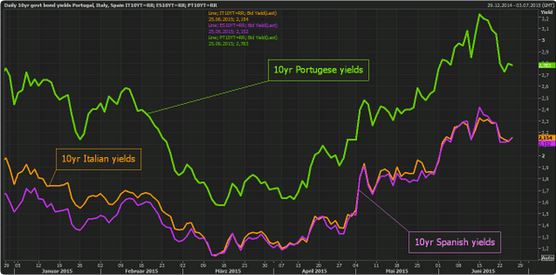 Ανοδικά κινούνται σήμερα οι αποδόσεις των ελληνικών ομολόγων μετά το νέο αδιέξοδο που σημειώθηκε στις διαπραγματεύσεις, καθώς και σε Ιταλία, Ισπανία και Πορτογαλία.