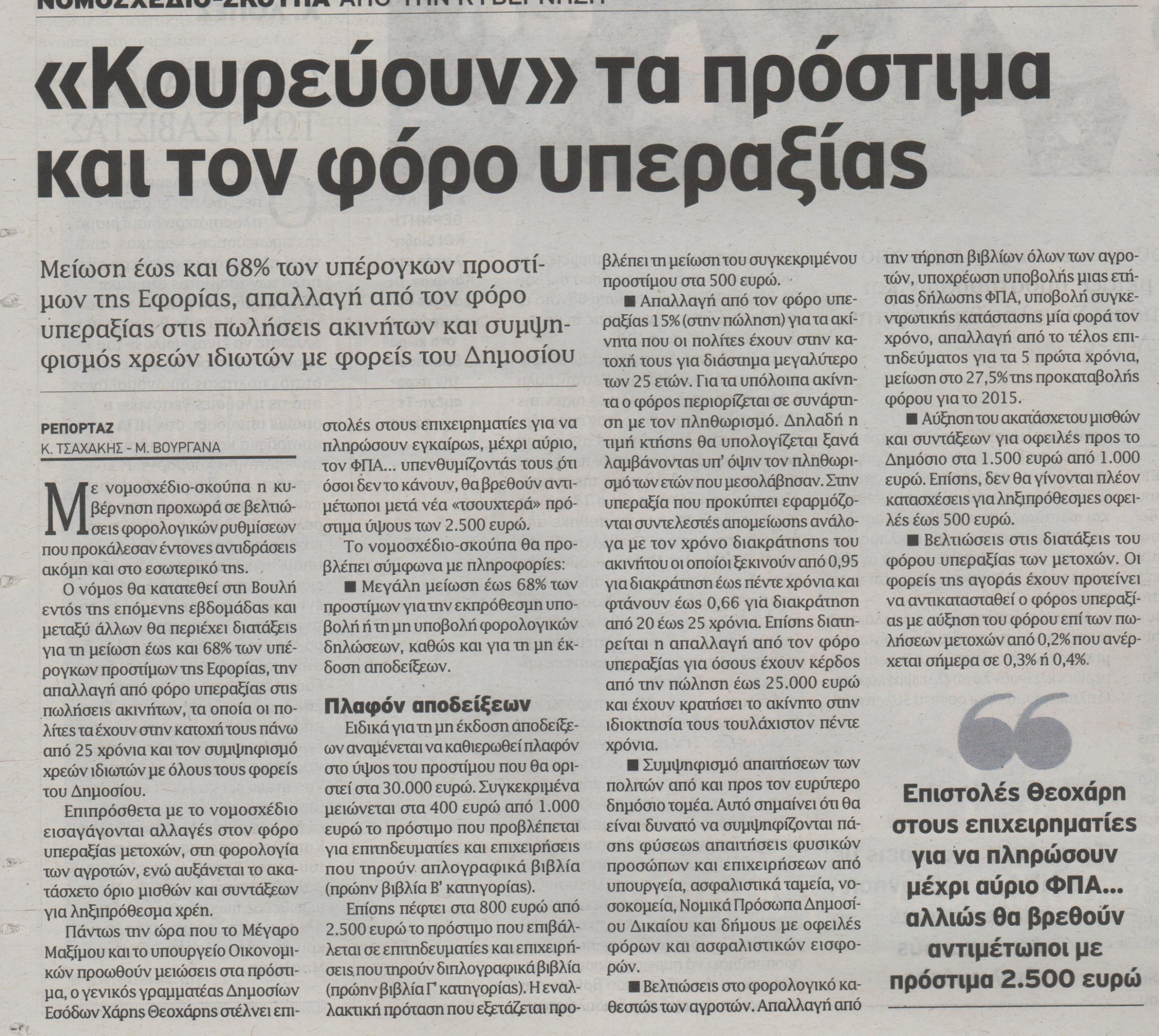Νόμος-σκούπα για πρόστιμα και φόρο υπεραξίας