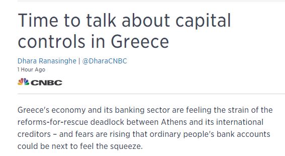 «Δεδομένου ότι η Ελλάδα και οι πιστωτές της, εξακολουθούν να παραμένουν στα μαχαίρια σε κομβικά θέματα της συμφωνίας διάσωσης, υπάρχει ένας σημαντικός και αυξανόμενος κίνδυνος για επιβολή κάποιας μορφής κεφαλαιακών ελέγχων».