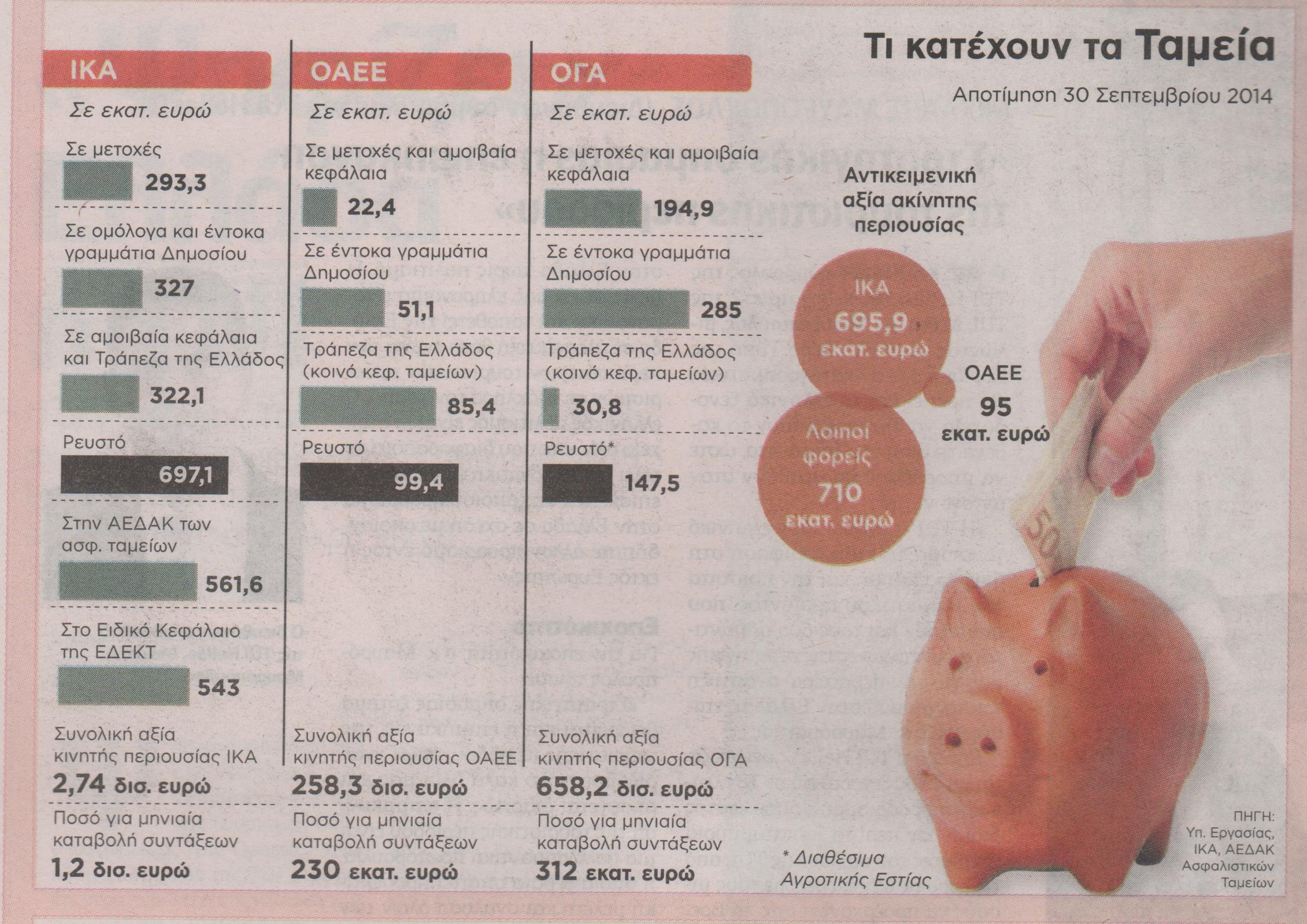 Ο Ελεύθερος Τύπος της Κυριακής αναζήτησε μέσα από την έρευνα του τη σύνθεση των χαρτοφυλακίων που έχουν σήμερα οι τρεις μεγαλύτεροι φορείς, δηλαδή το ΙΚΑ, ο ΟΓΑ και ο ΟΑΕΕ.