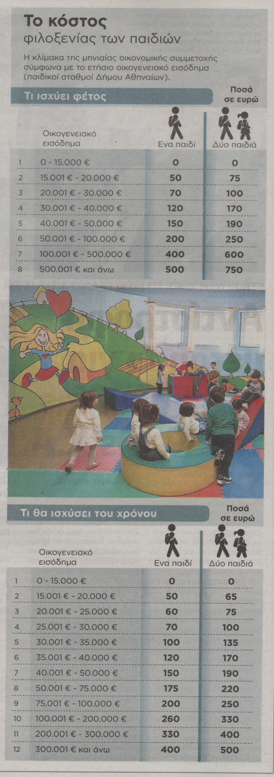 Ο «τιμοκατάλογος» των δημοτικών παιδικών σταθμών
