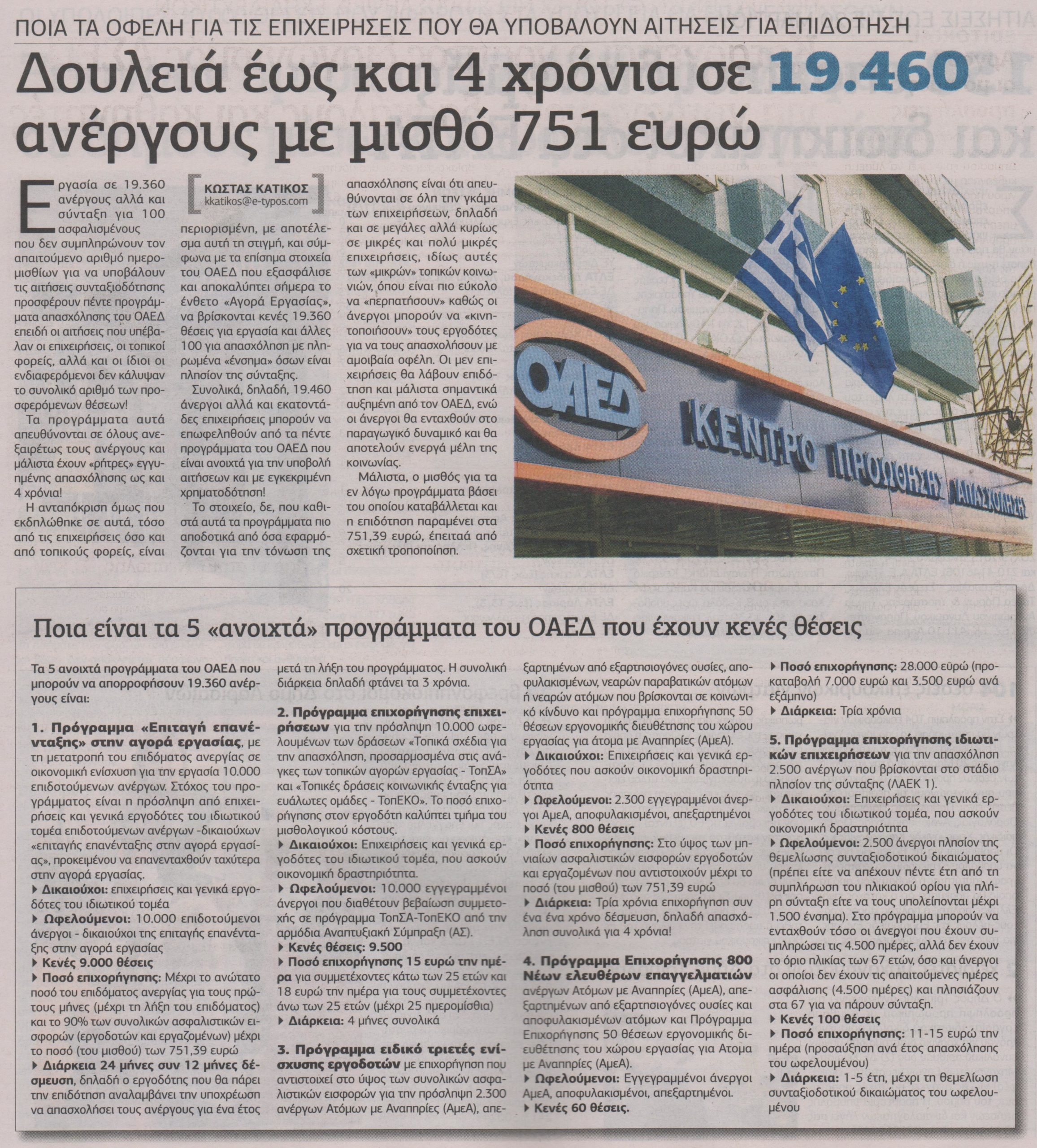 Όλες τις δράσεις που τρέχουν για την απασχόληση και από τις οποίες μπορούν να επωφεληθούν άνεργοι και επιχειρήσεις, εφόσον σπεύσουν να ενταχθούν στα προγράμματα του ΟΑΕΔ που είναι ανοικτά, αποκαλύπτει σήμερα η “Αγορά Εργασίας”.