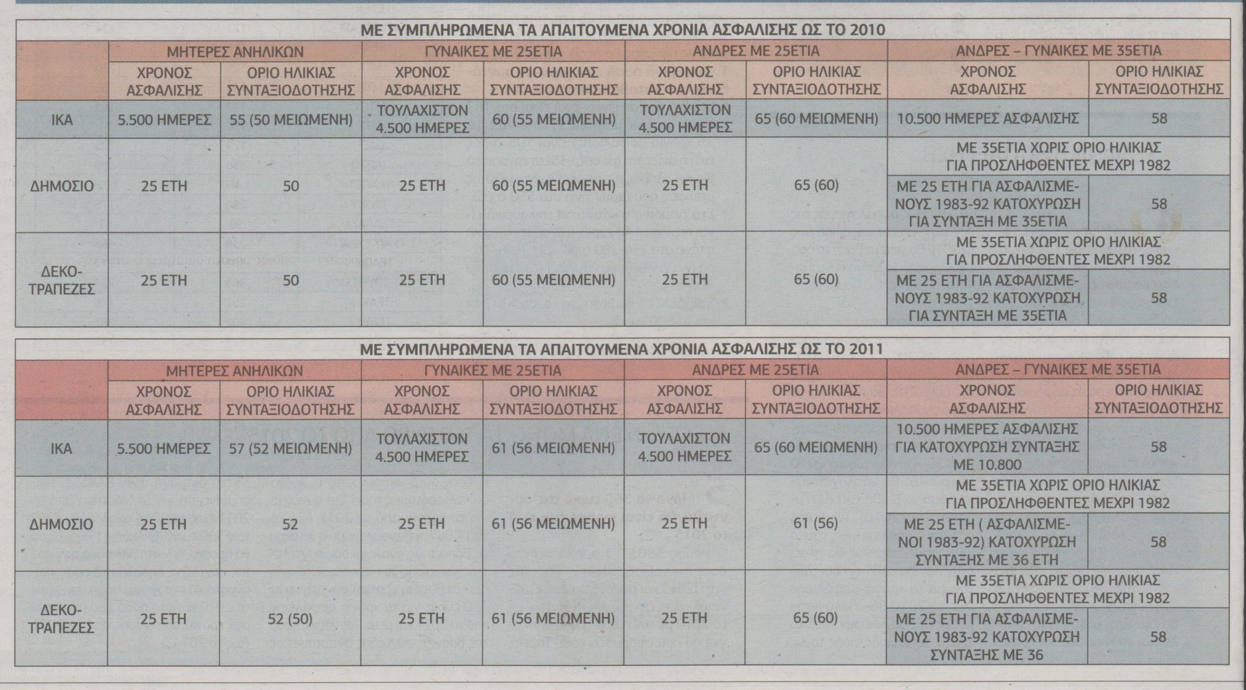 Στους πίνακες που επεξεργάστηκε και δημοσιεύει σήμερα ο Ελεύθερος Τύπος στο ένθετο «Ασφάλιση και Συντάξεις» παρουσιάζονται αναλυτικά οι προϋποθέσεις συνταξιοδότησης που μπορούν να εκμεταλλευτούν χιλιάδες ασφαλισμένοι, κάνοντας τις επιλογές τους.
