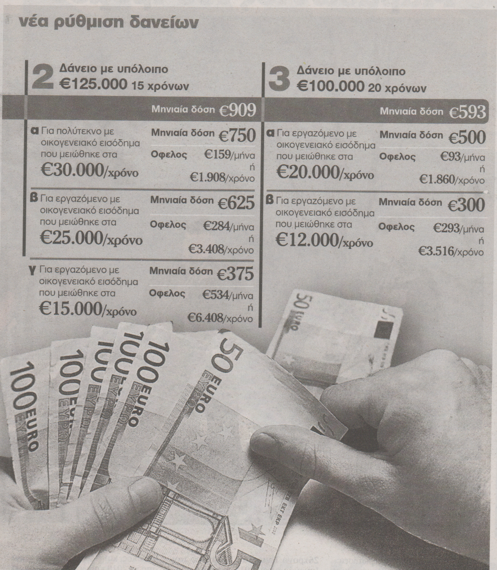 Βαθιά ανάσα για εκατοντάδες χιλιάδες δανειολήπτες και ψαλίδι στη μηνιαία δόση ακόμη και κάτω από 50% σε σχέση με σήμερα προσφέρουν οι ρυθμίσεις για τα δάνεια των νοικοκυριών που ανακοίνωσε το υπουργείο Ανάπτυξης.