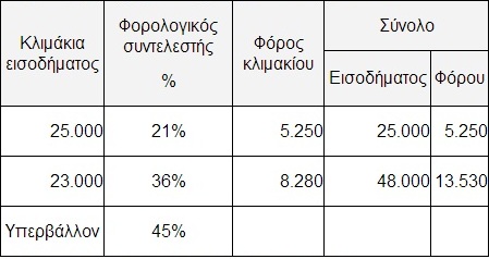 Ο φόρος που προκύπτει με βάση την κλίμακα μειώνεται: