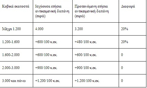 Η κλίμακα για τα ενοίκια φυσικών προσώπων