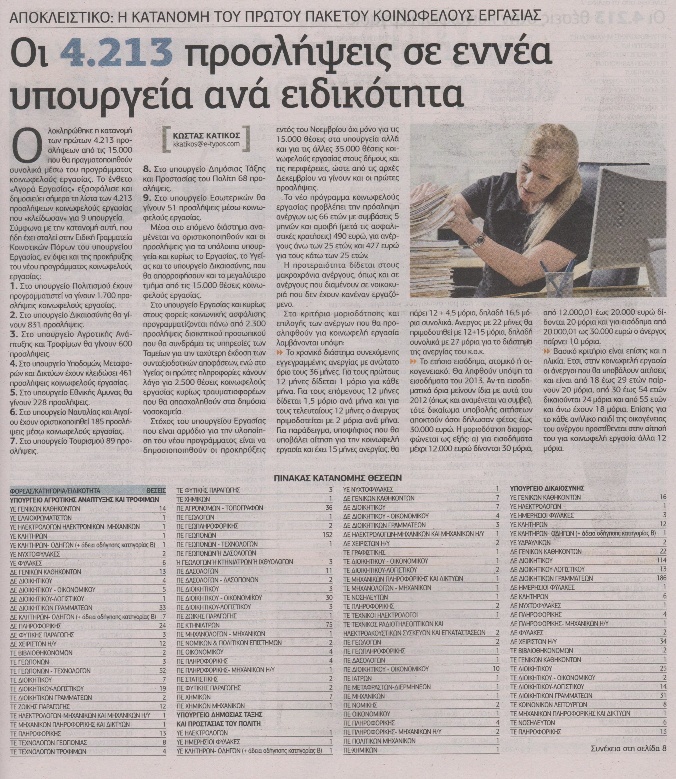 Οι 4.213 προσλήψεις σε 9 υπουργεία ανά ειδικότητα