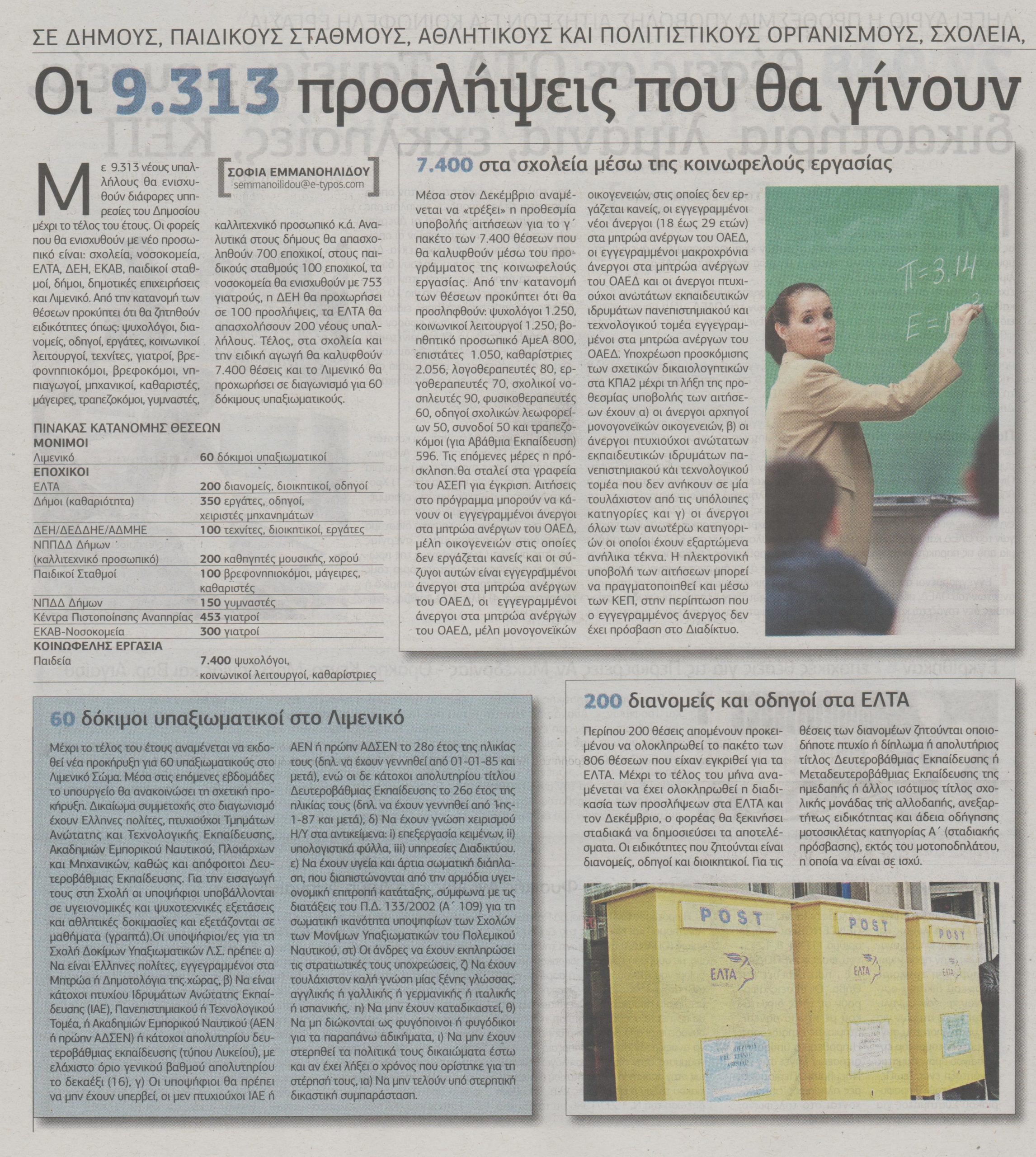 Οι 9.313 προσλήψεις στο δημόσιο
