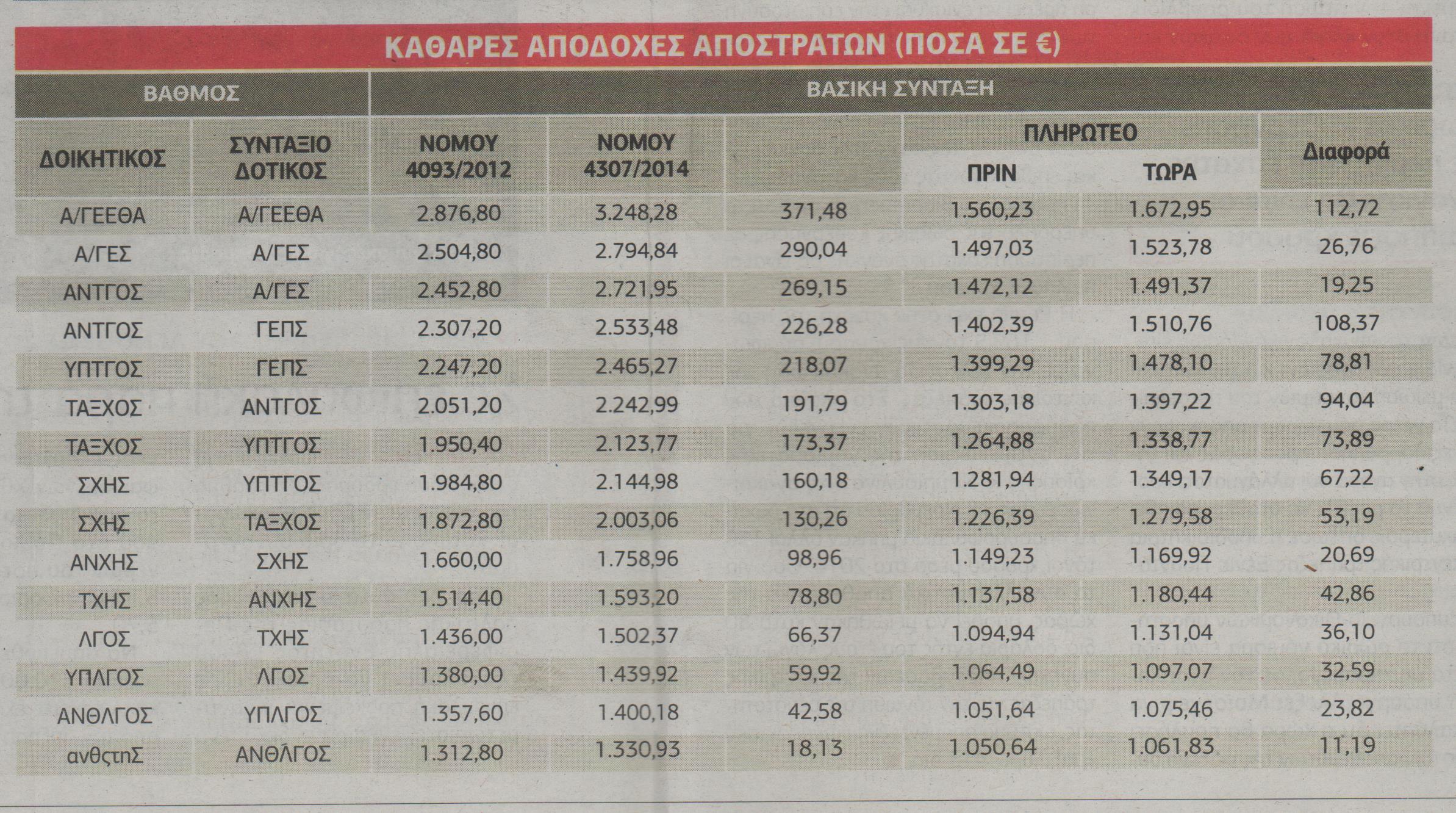 «Ψαλιδισμένες» αισθητά θα είναι τελικά οι αυξήσεις που θα λάβουν στις καθαρές αποδοχές τους οι απόστρατοι στις 22 Δεκεμβρίου! Στη συντριπτική πλειονότητα των περιπτώσεων, τα καθαρά ποσά αυξήσεων που πρόκειται να καταβληθούν στους απόστρατους, λόγω της επιστροφής του 50% των περικοπών που τους επιβλήθηκαν με τις αντισυνταγματικές ρυθμίσεις του ν. 4093/2013, θα είναι… «κουτσουρεμένα» κατά 38,28% έως και 92,85%, σε σύγκριση με τα μικτά ποσά αυξήσεων!