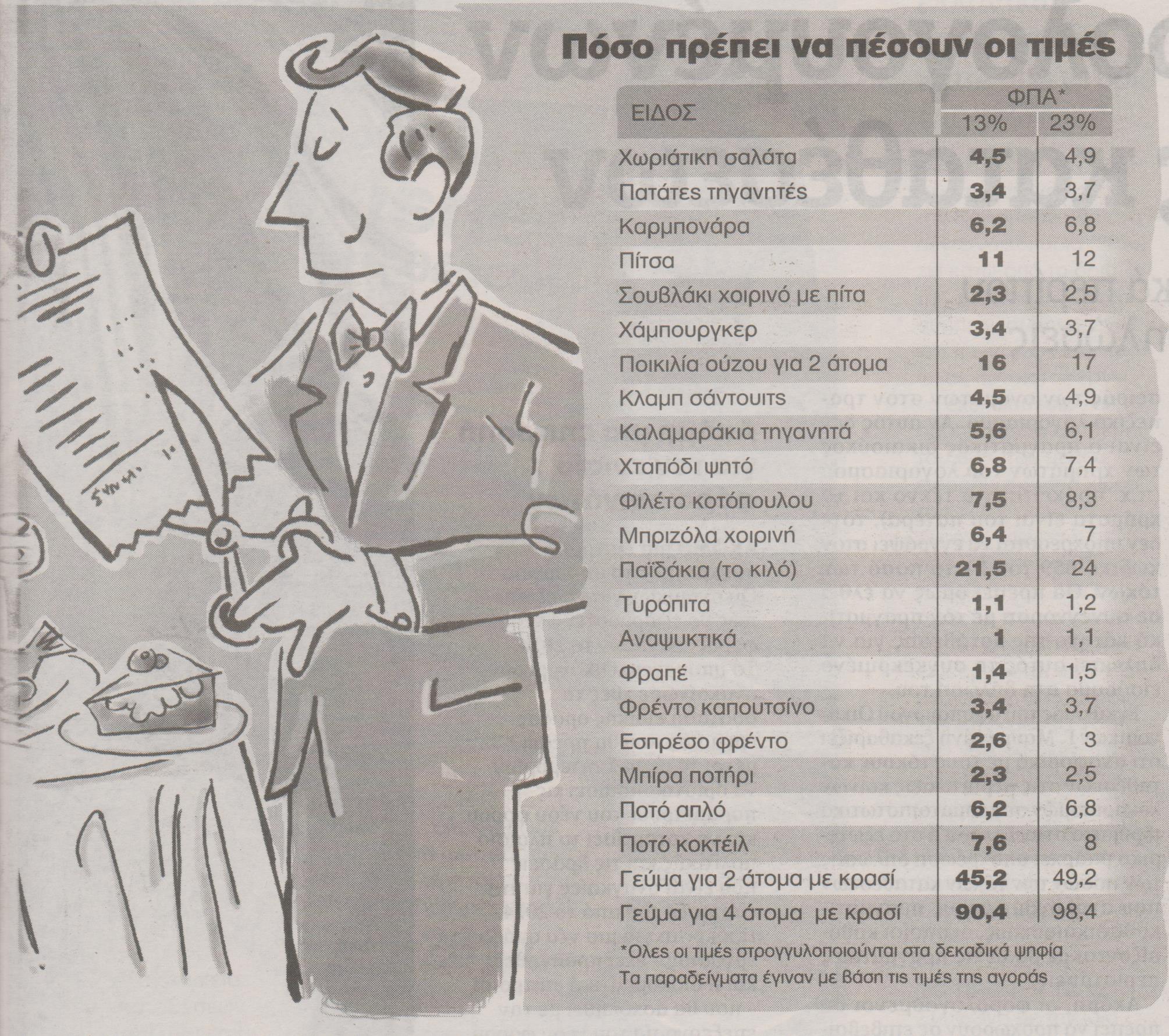 Oι αλλαγές στις τιμές με το νέο ΦΠΑ