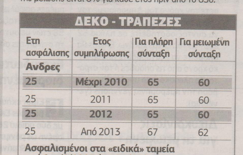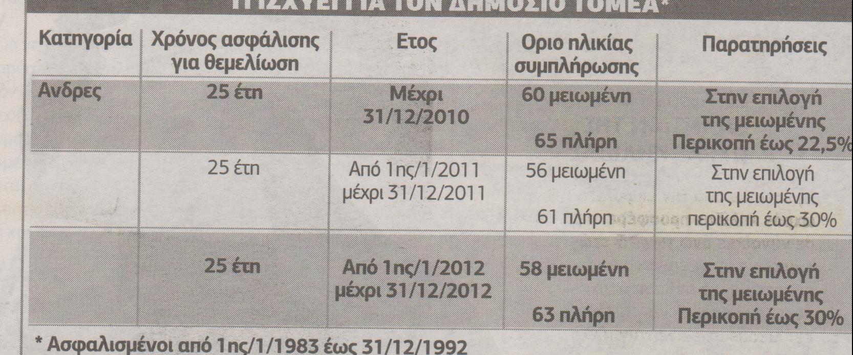 Για όσους συμπλήρωσαν 25ετία μέχρι το τέλος του 2010, μειωμένη σύνταξη δίνεται στα 60.