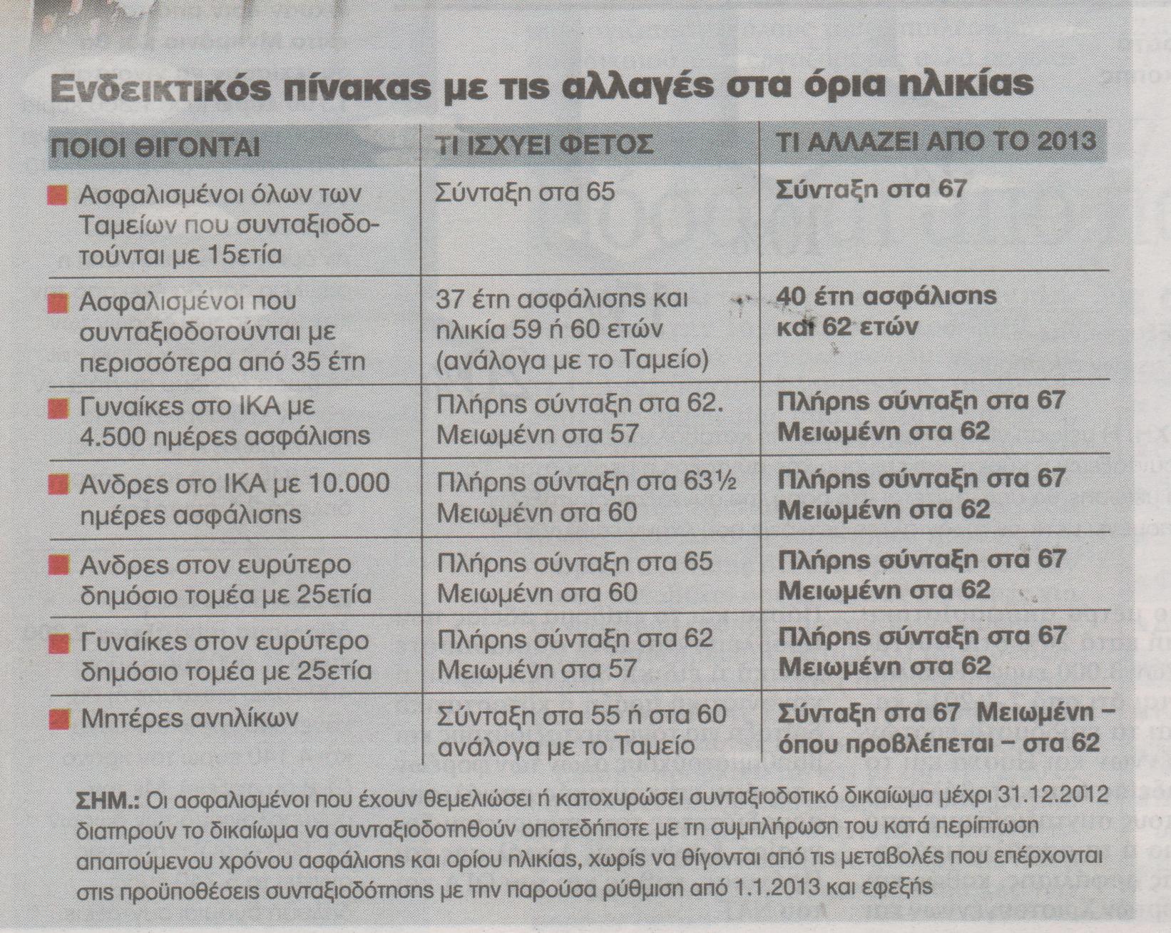 Οσοι δεν έχουν θεμελιώσει μέχρι 31/12/2012 συνταξιοδοτικό δικαίωμα είναι οι μεγάλοι χαμένοι του νέου Ασφαλιστικού με την προσθήκη δύο ετών στα όρια συνταξιοδότησης. Με τη νέα ρύθμιση επέρχονται από το 2013 μεταβολές ως προς τον απαιτούμενο χρόνο ασφάλισης και το όριο ηλικίας για τη λήψη σύνταξης από τους φορείς κοινωνικής ασφάλισης, συμπεριλαμβανομένου του ΟΓΑ, με εξαίρεση το ΝΑΤ.