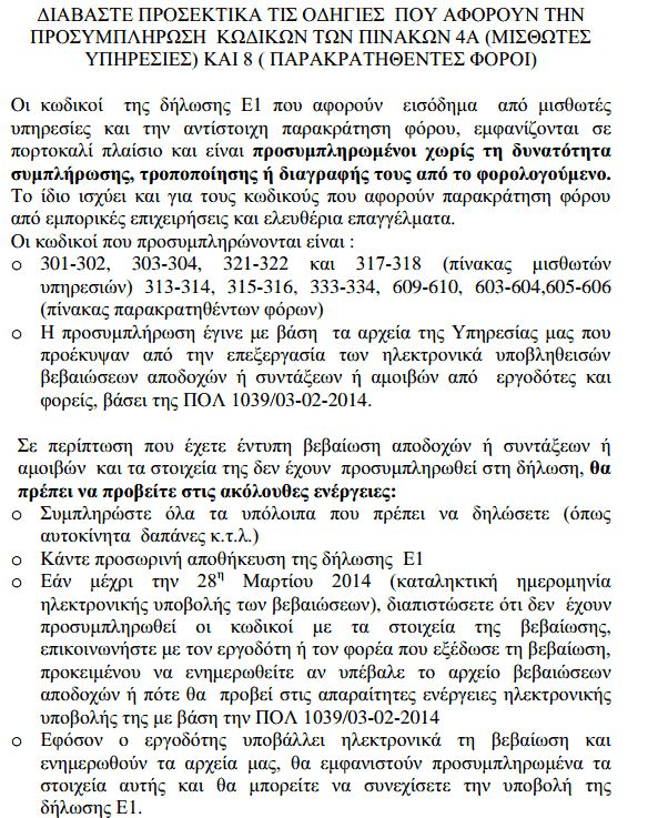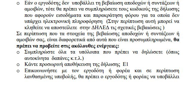 Με το σχετικό κείμενο, οι φορολογούμενοι ενημερώνονται για το ποιοι κωδικοί της φορολογικής δήλωσης θα εμφανίζονται (ή θα πρέπει να εμφανίζονται) συμπληρωμένοι από τους εργοδότες ή τα ασφαλιστικά ταμεία, αλλά και για το τι θα πρέπει να πράξουν, σε περίπτωση που τα στοιχεία λείπουν ή είναι λανθασμένα.