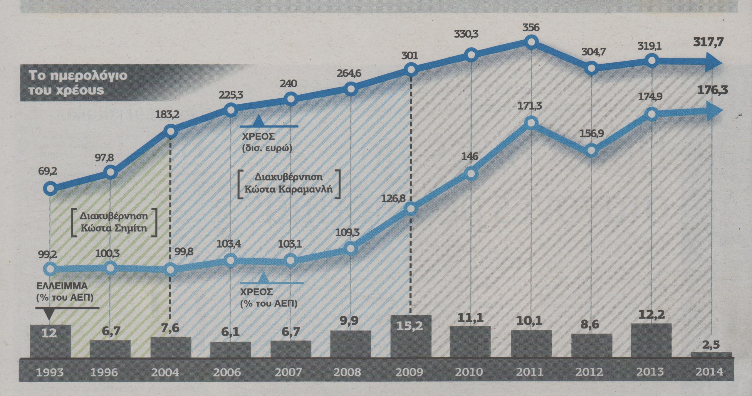 Αν διατρέξει κανείς τα στατιστικά δεδομένα για την εξέλιξη του δημόσιου χρέους και του δημοσιονομικού ελλείμματος στην Ελλάδα δεν χρειάζεται να έχει γνώσεις πυρηνικής φυσικής για να διαπιστώσει ότι η μεγάλη ζημιά έγινε ανάμεσα στο 2004 και το 2009.