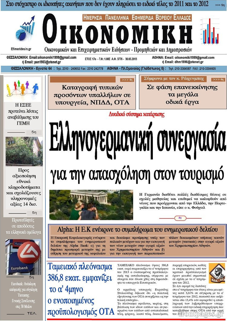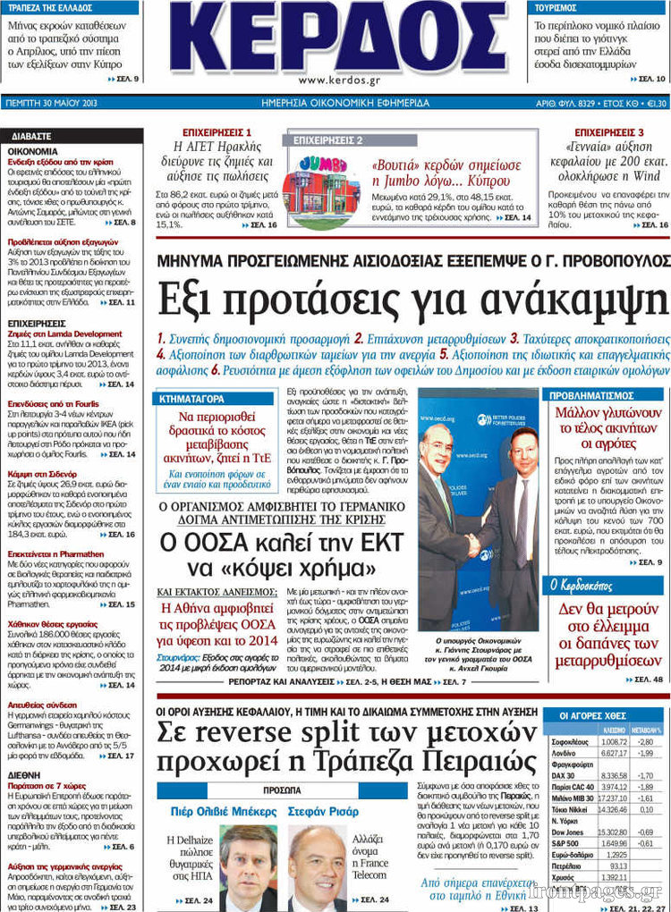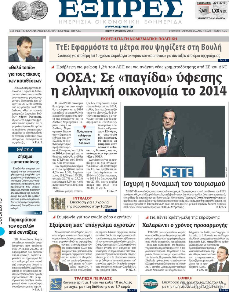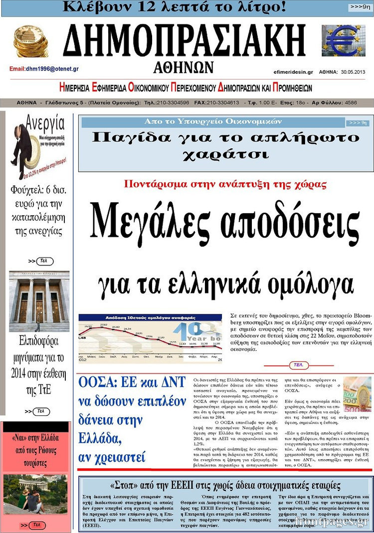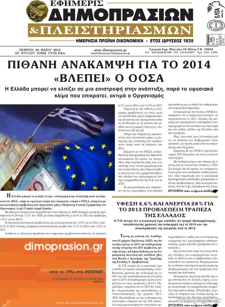 Οι oικονομικές εφημερίδες Enikos Newsroom 08:30, Πέμπτη 30 Μαΐου 2013 οικονομία Οι oικονομικές εφημερίδες Διαβάστε τα πρωτοσέλιδα των οικονομικών εφημερίδων: ΕΦΗΜΕΡΙΔΕΣ ΟΙΚΟΝΟΜΙΚΕΣ ΕΦΗΜΕΡΙΔΕΣ ΠΡΩΤΟΣΕΛΙΔΑ Μοιράσου το: σχολίασε κι εσύ (0 σχόλια) Ακολουθήστε το enikos.gr στο Google News και μάθετε πρώτοι όλες τις ειδήσεις Δείτε όλες τις τελευταίες ειδήσεις από την Ελλάδα και τον Κόσμο στο enikos.gr Ειδήσεις Ροή Ειδήσεων 20 λεπτά πριν Χριστούγεννα στα μπλόκα οι αγρότες: Άνοιξαν στα διόδια και μοίρασαν προϊόντα στους πολίτες – Νέα σύσκεψη την Κυριακή στη Νίκαια 40 λεπτά πριν Κύκλωμα διακίνησης ναρκωτικών σε σχολεία: Τηλεφωνούσαν στους ανηλίκους την ώρα του μαθήματος – Οι διάλογοι-σοκ, τα «ψευδώνυμα» και τα βασανιστήρια 9 λεπτά πριν Αρχεία Επστάιν: Οι 500 σελίδες που λείπουν, τα αναπάντητα ερωτήματα και οι επώνυμοι – Τι έπεται 2 ώρες πριν Ζελένσκι: Μόνο οι ΗΠΑ και ο Τραμπ μπορούν να πιέσουν τη Ρωσία να βάλει τέλος στον πόλεμο 2 ώρες πριν Φοινικούντα: Προφυλακιστέος ο 30χρονος για συνέργεια στη διπλή δολοφονία – Και άλλα πρόσωπα στο «μικροσκόπιο» 2 ώρες πριν Αριθμολογία: Ο αριθμός του φύλακα αγγέλου σας, με βάση τον μήνα γέννησής σας – «Έτσι σας στέλνει σημάδια το σύμπαν» 3 ώρες πριν Πώς να απαλλαγείτε από τη μυρωδιά του τηγανητού φαγητού: Το μυστικό βρίσκεται στην κουζίνα σας 14 ώρες πριν Enerwave: Το νέο «ρεύμα» στη λιανική ενέργειας που αλλάζει την εμπειρία του καταναλωτή 1 ώρα πριν Ύπνος: Η διατροφή που μπορεί να σας βοηθήσει να κοιμάστε καλύτερα και να ζήσετε περισσότερο 6 λεπτά πριν Αποκαλύφθηκε το άγνωστο «GPS» της αρχαιότητας – Πώς οι ναοί «φώτιζαν» τον δρόμο των ναυτικών πριν από την εφεύρεση των φάρων 9 λεπτά πριν Αρχεία Επστάιν: Οι 500 σελίδες που λείπουν, τα αναπάντητα ερωτήματα και οι επώνυμοι – Τι έπεται 20 λεπτά πριν Χριστούγεννα στα μπλόκα οι αγρότες: Άνοιξαν στα διόδια και μοίρασαν προϊόντα στους πολίτες – Νέα σύσκεψη την Κυριακή στη Νίκαια 29 λεπτά πριν Ολυμπιακός – Κηφισιά 1-1: Δεύτερη σερί ισοπαλία για τους Ερυθρόλευκους – Υπό… αμφισβήτηση η κορυφή της Super League 40 λεπτά πριν Κύκλωμα διακίνησης ναρκωτικών σε σχολεία: Τηλεφωνούσαν στους ανηλίκους την ώρα του μαθήματος – Οι διάλογοι-σοκ, τα «ψευδώνυμα» και τα βασανιστήρια ENIKOS NETWORK Οι γυναίκες αποκαλύπτουν το πιο ελκυστικό πράγμα που μπορεί να κάνει ένας άνδρας Ομορφιά και αντιγήρανση: Ειδικοί μιλούν για συσκευές περιποίησης του δέρματος Ακύρωση ΑΦΜ για απάτες – Ποιους βάζει στο στόχαστρο η ΑΑΔΕ Ρεύμα: Πώς μπορείτε να αλλάξετε πάροχο γρήγορα και εύκολα – Τα βήματα της διαδικασίας Χαρτογραφώντας το «σημείο χωρίς επιστροφή»: Για πρώτη φορά αποκαλύπτεται με λεπτομέρεια το ακανθώδες όριο της ατμόσφαιρας τ... Η Google καταργεί τη λειτουργία «dark web report» – Πώς θα μπορούν οι χρήστες να διαγράφουν τα δεδομένα τους περισσότερα 10:42 , Σάββατο 20 Δεκεμβρίου 2025 e-ΕΦΚΑ και ΔΥΠΑ: Οι πληρωμές από 22 έως 24 Δεκεμβρίου – Ποιοι θα δουν χρήματα στους λογαριασμούς τους Τον «χάρτη» με τις πληρωμές από τον e-ΕΦΚΑ και τη ΔΥΠΑ για την περίοδο από τις 22 έως τις 24 Δ... 08:37 , Σάββατο 20 Δεκεμβρίου 2025 Ο «χάρτης» με τις αυξήσεις και τις φοροελαφρύνσεις του 2026 – Ποιοι και πόσα κερδίζουν Αύξηση συντάξεων, μείωση φόρων, νέα αναπροσαρμογή του κατώτατου μισθού και των επιδομάτων που ... 17:35 , Παρασκευή 19 Δεκεμβρίου 2025 ΔΥΠΑ: Τι δείχνουν τα νέα στοιχεία για την ανεργία Το σύνολο των εγγεγραμμένων ανέργων για τον μήνα Νοέμβριο 2025 ανήλθε σε 894.065 άτομα καταγρά... 12:58 , Πα