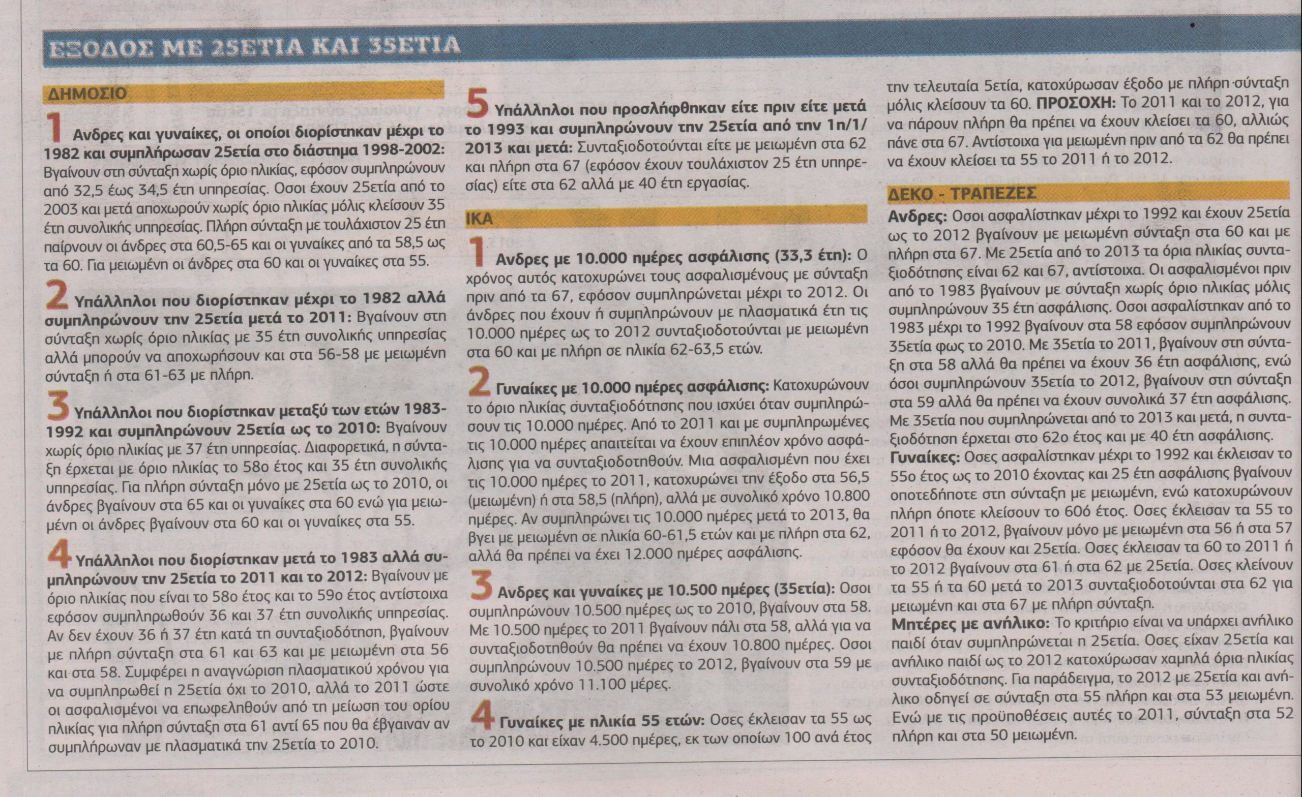 Έτσι, για όσους έχουν 25 έτη υπηρεσίας στο Δημόσιο μέχρι και 31/12/2012 θεωρείται ότι θεμελιώνουν δικαίωμα για σύνταξη στα 58 ή στα 59 με 35, 36 και 37 έτη.