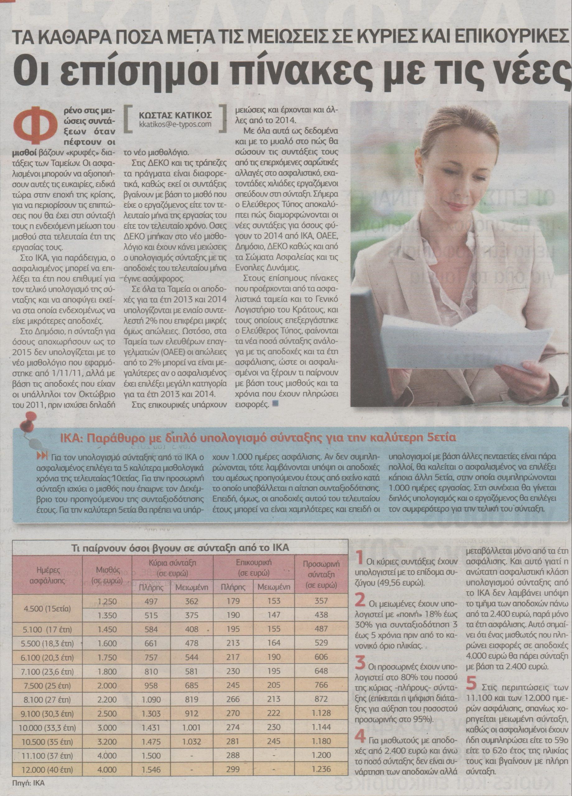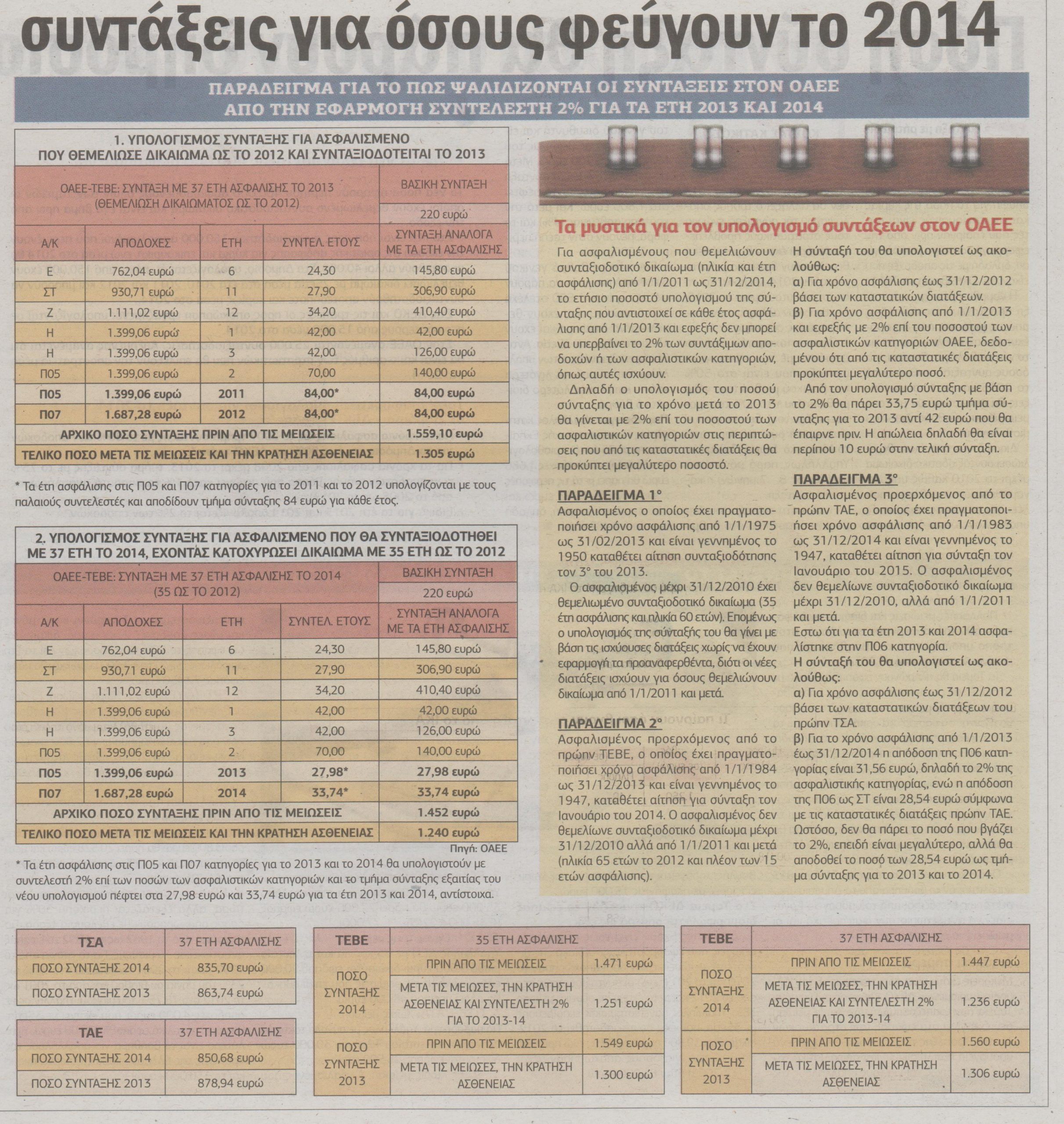 Οι πίνακες με τις συντάξεις για όσους φεύγουν το 2014