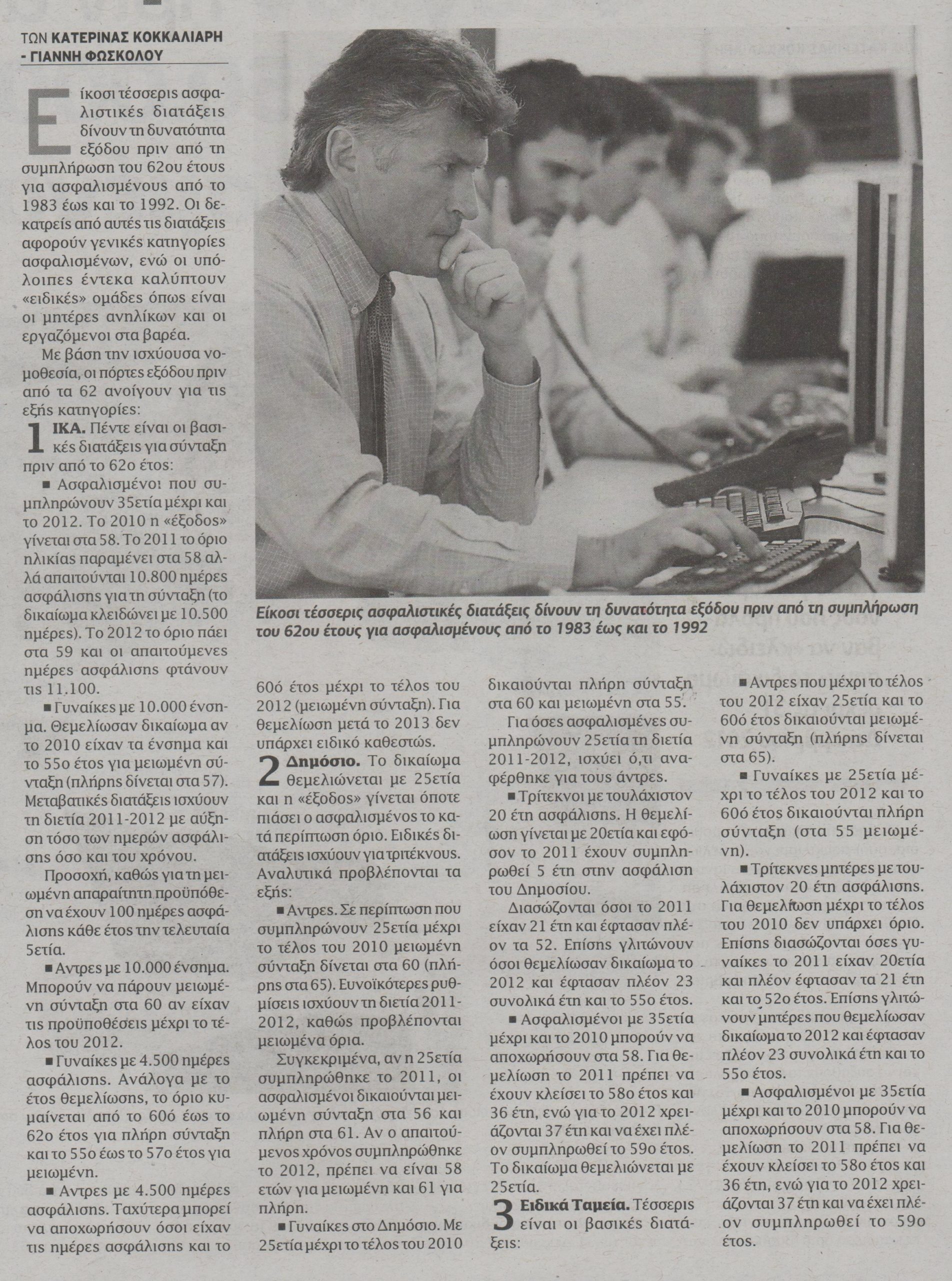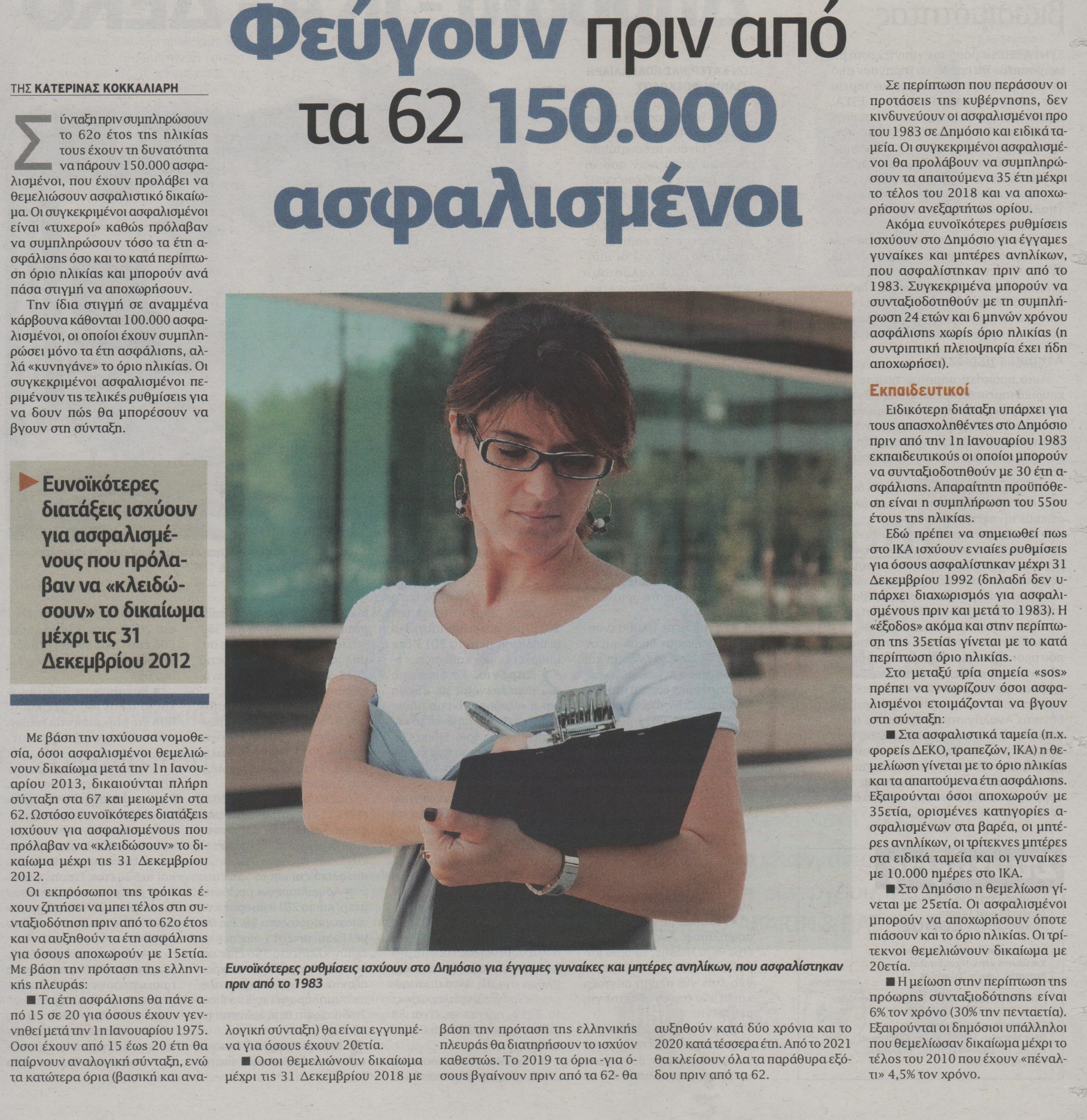 Οι “τυχεροί” του ασφαλιστικού- Σύνταξη πριν τα 62 για 150.000 ασφαλισμένους